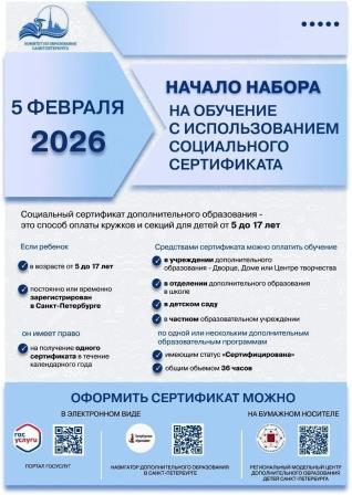 Уважаемые родители, законные представители! С 05.02.2026 в ГБУ ДО ДЮТЦ «Васильевский остров» открывается запись на образовательные программы за счет средств социального...