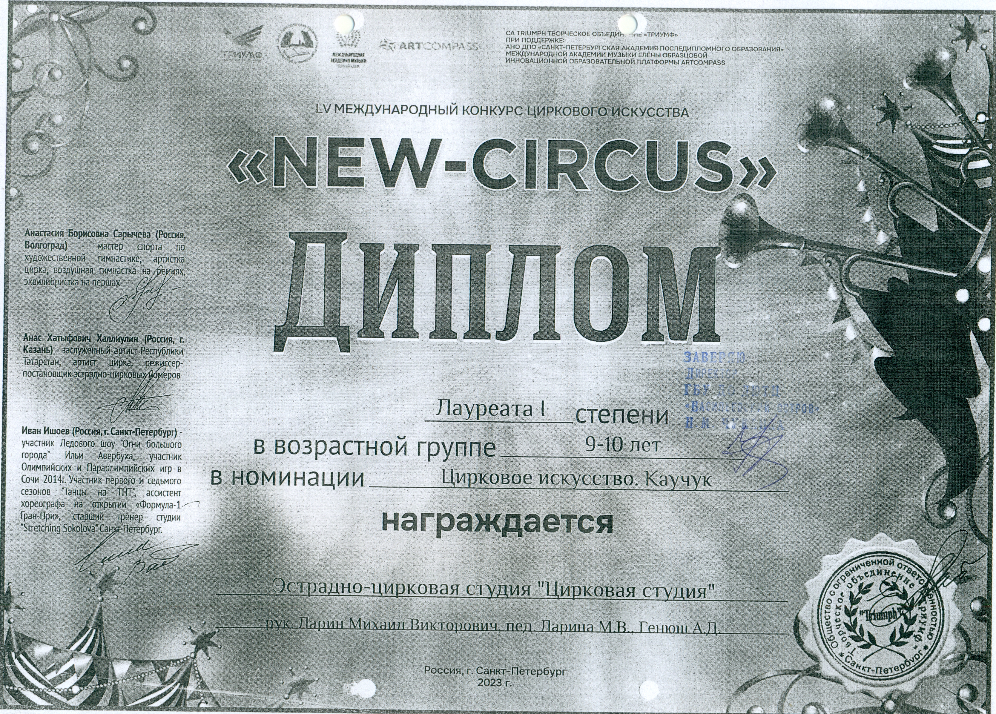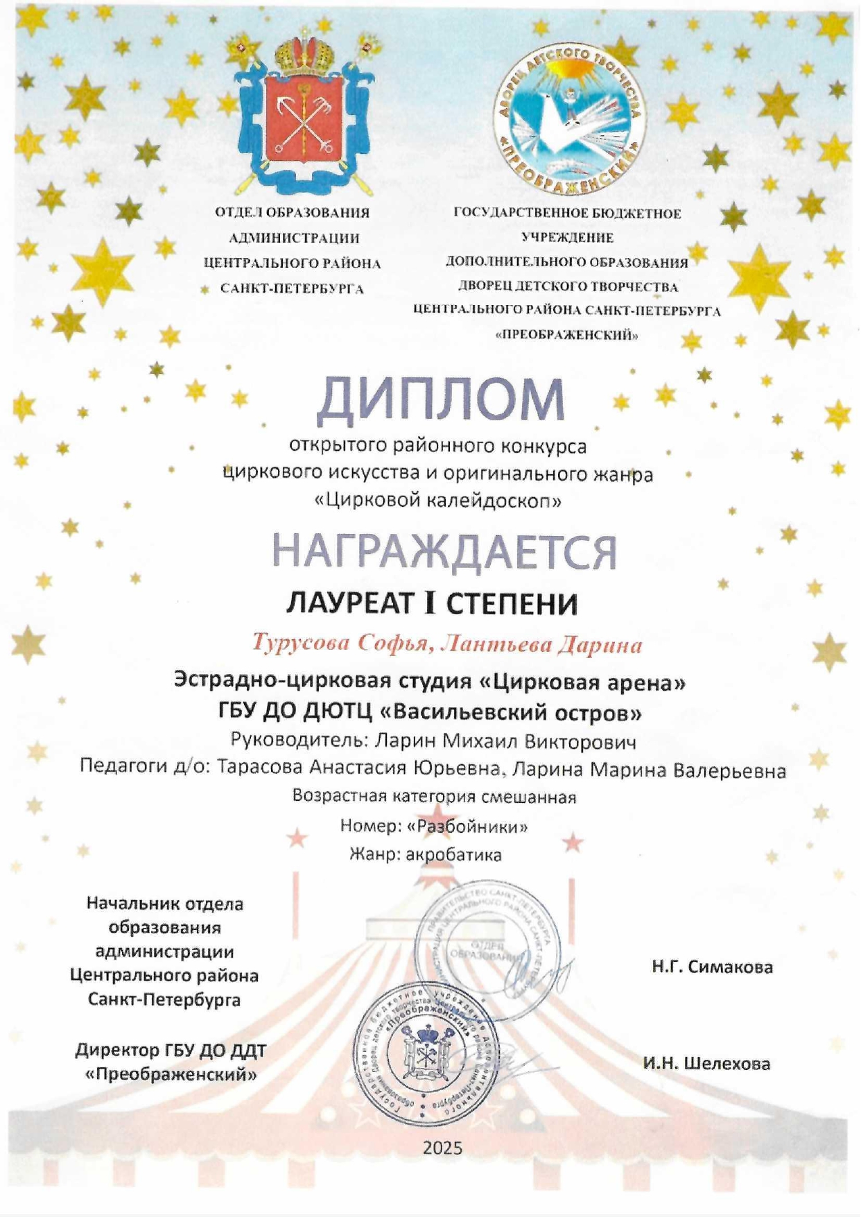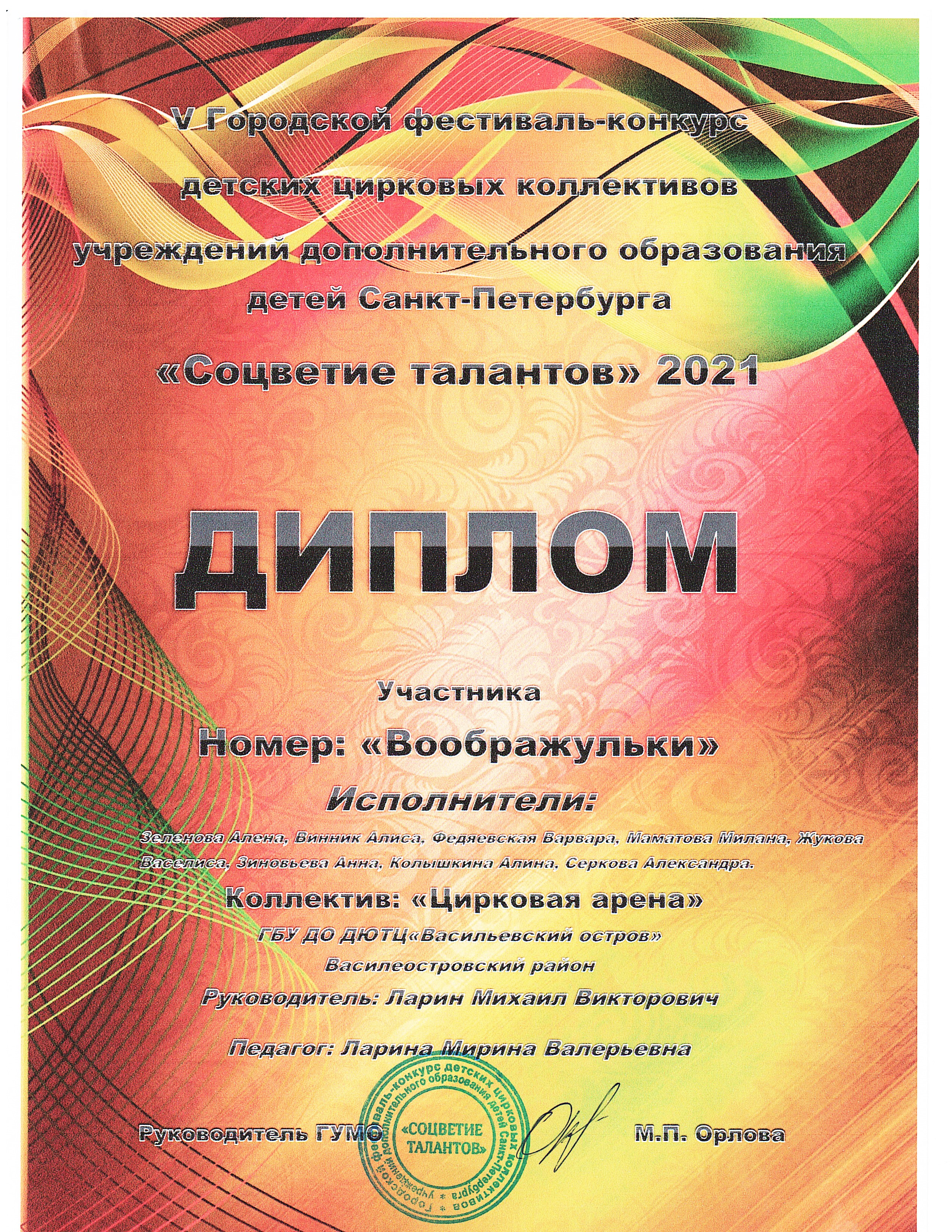 Репертуар студии "Цирковая арена" 2021-2026 г.г.