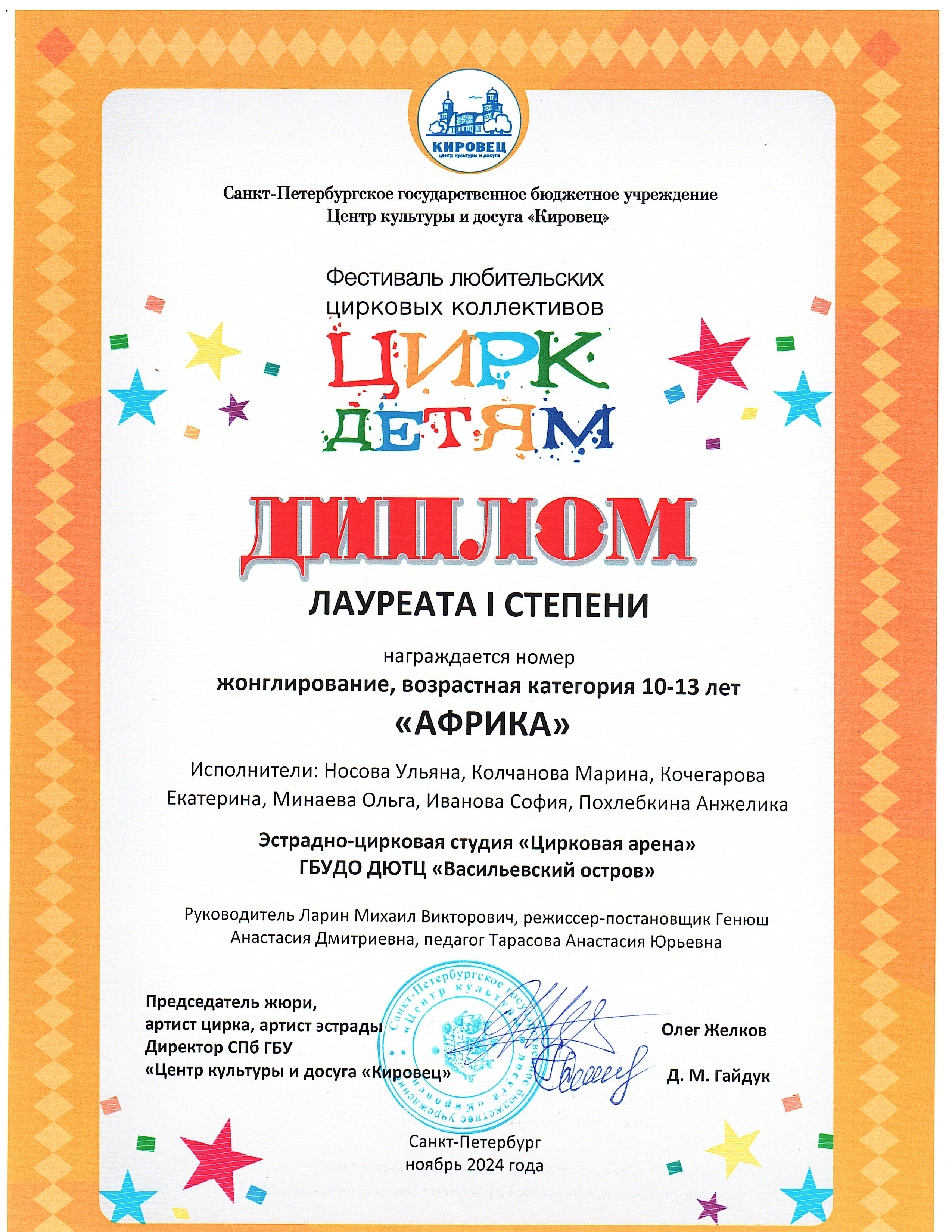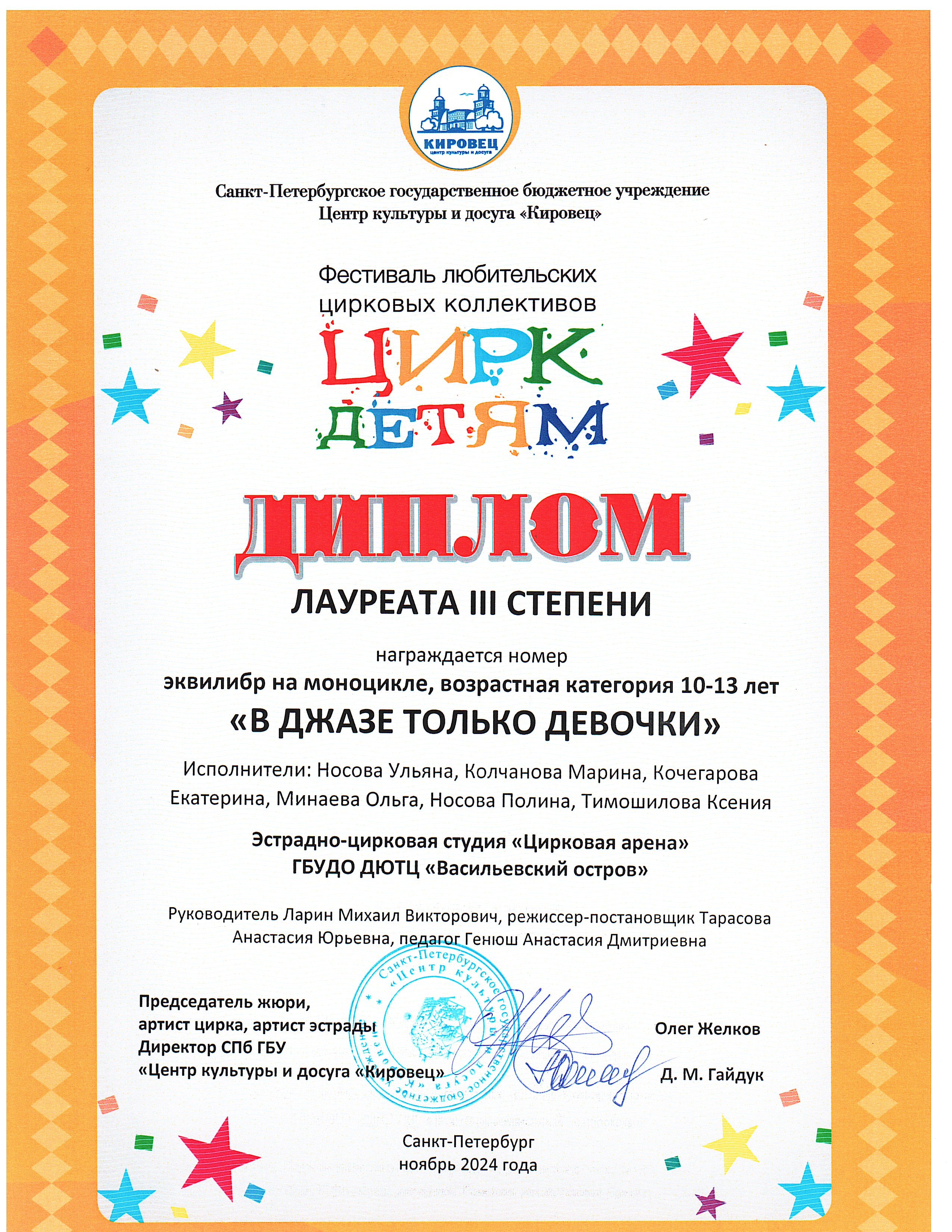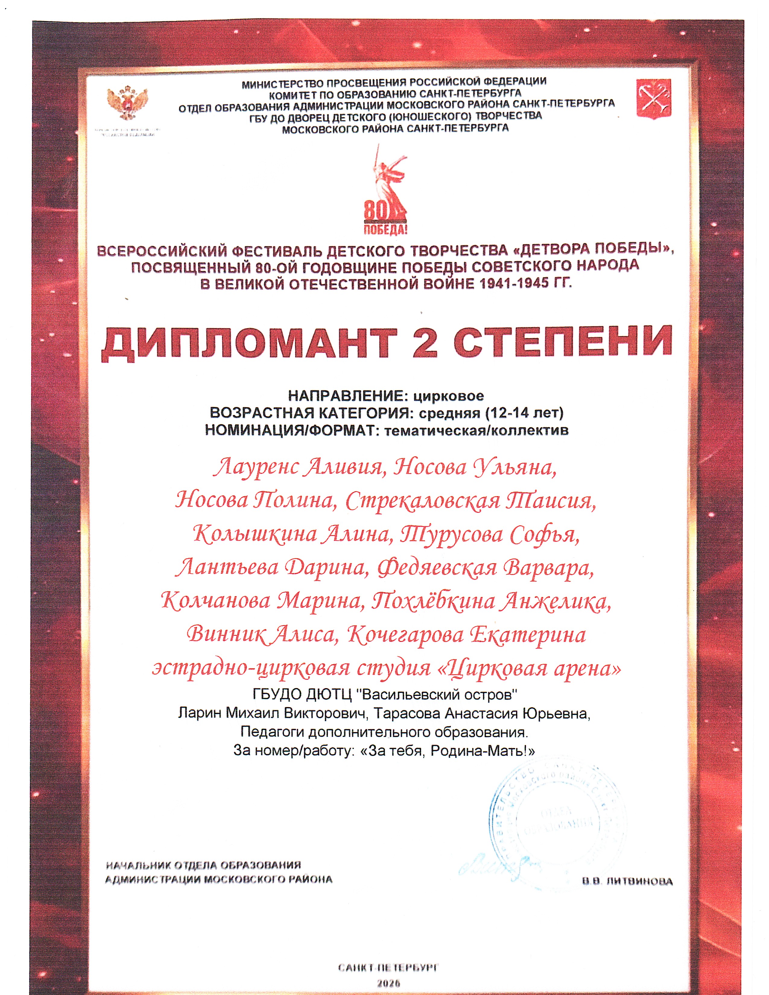 Репертуар студии "Цирковая арена" 2021-2026 г.г.