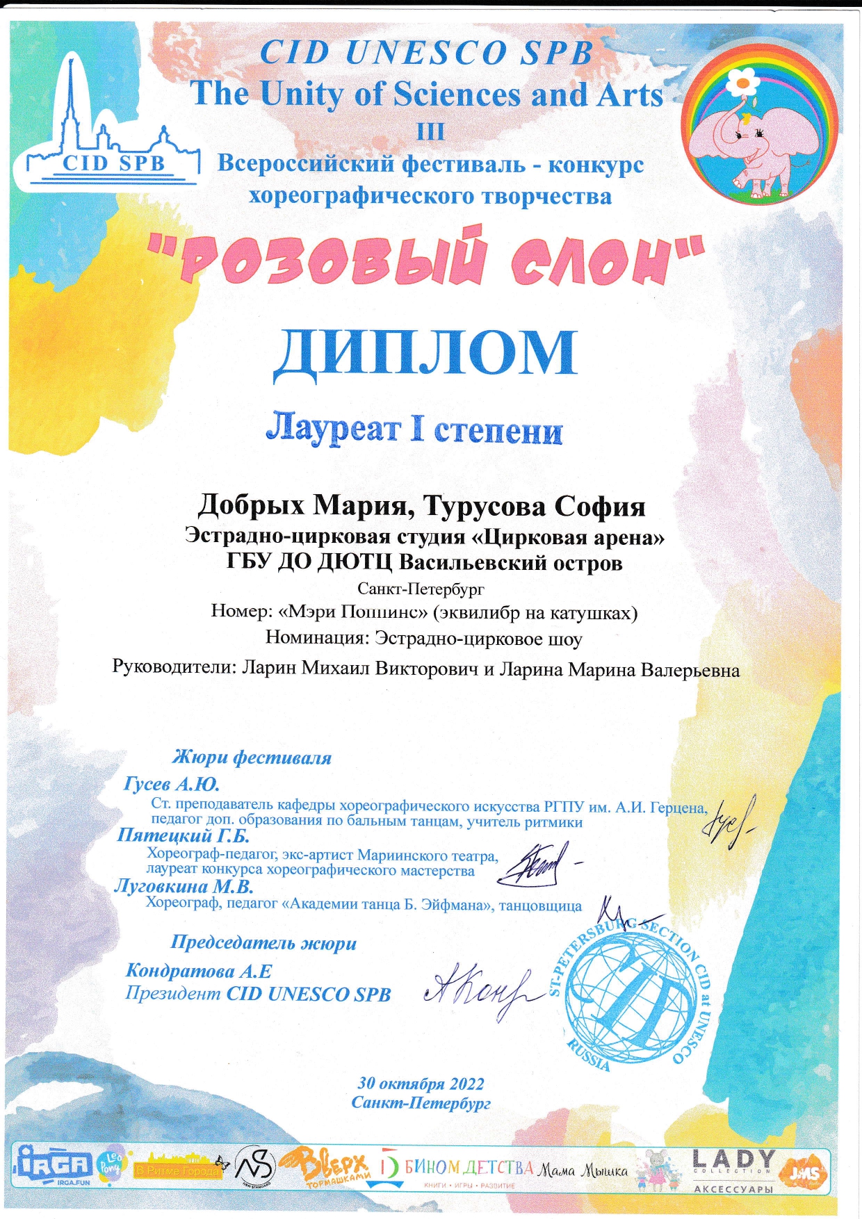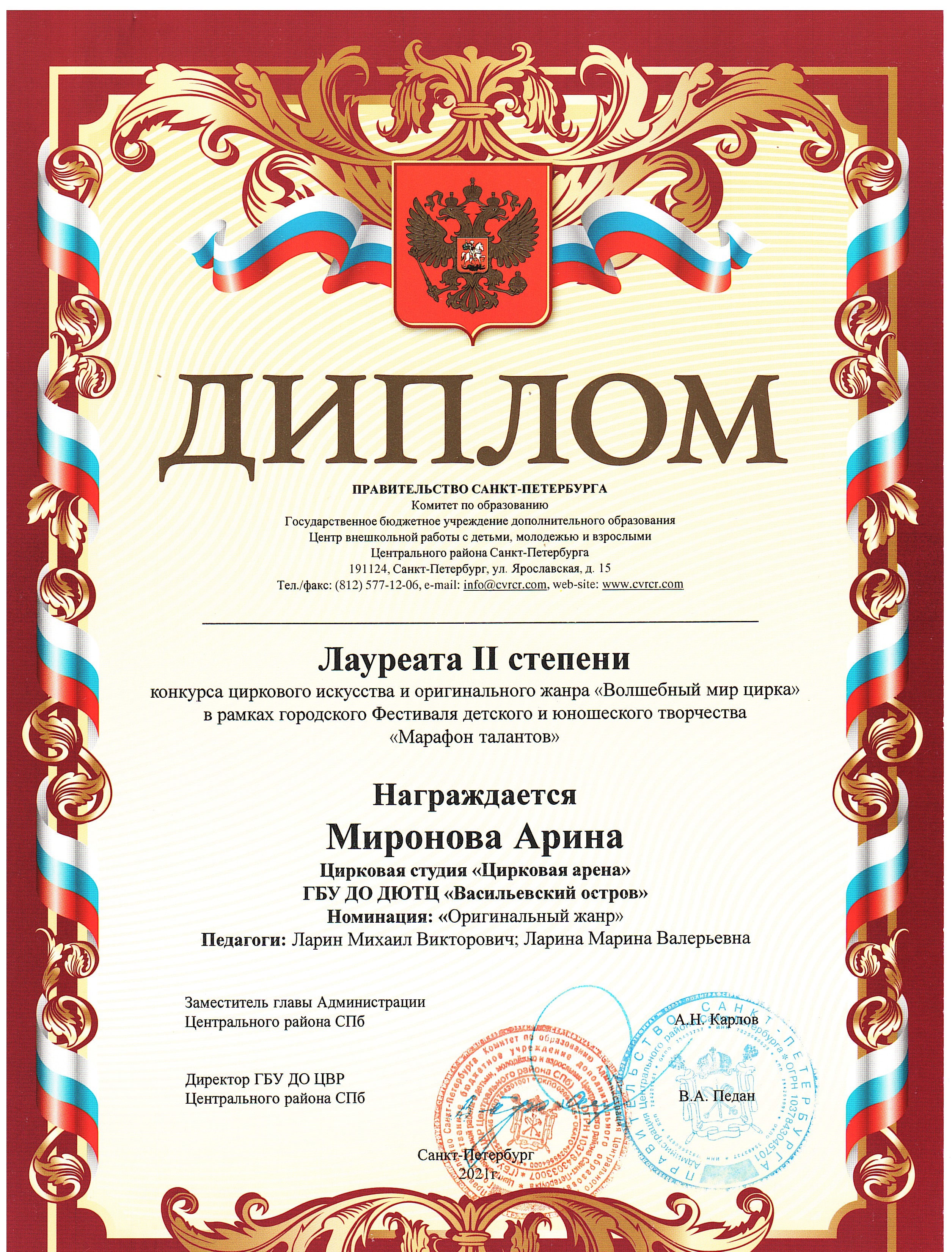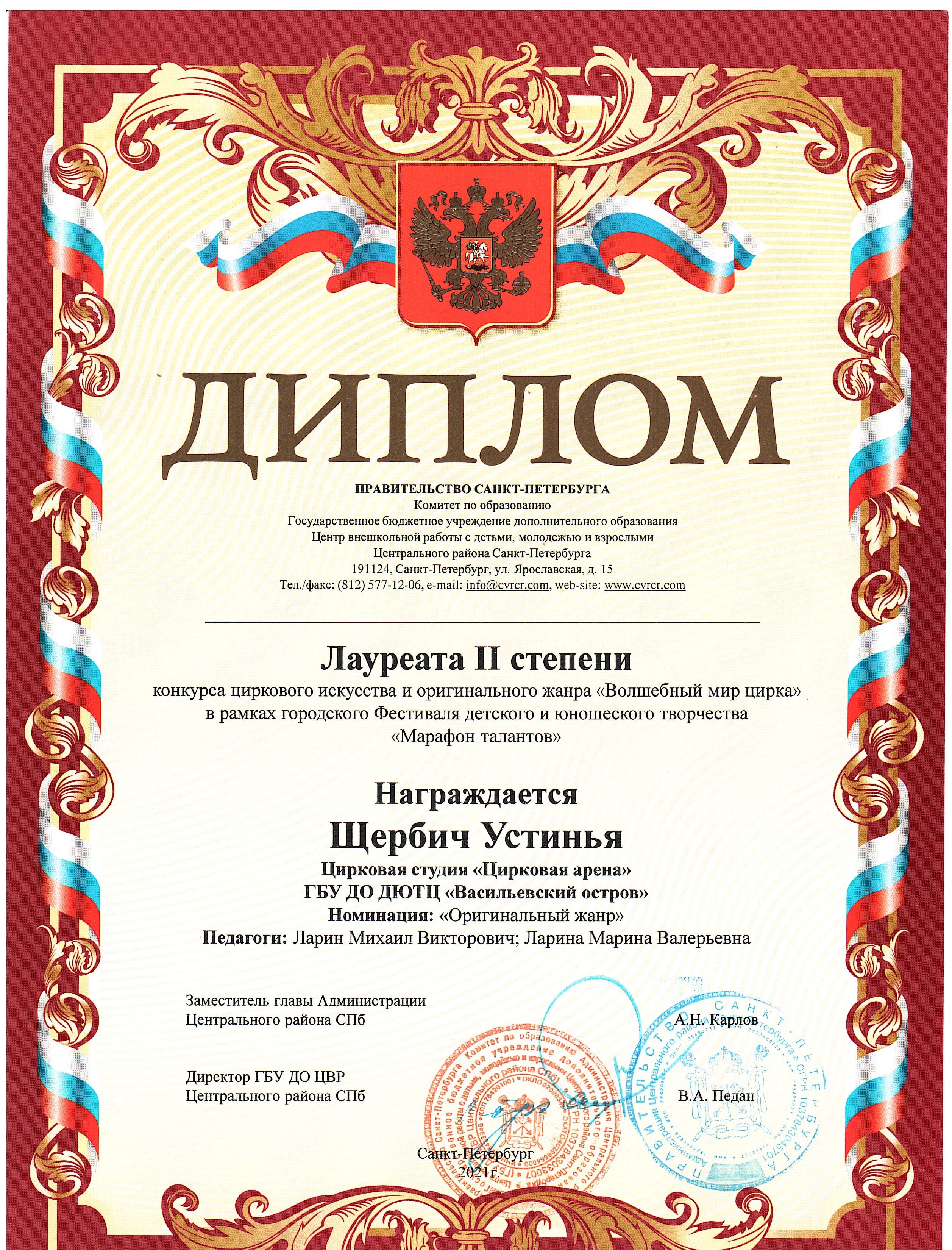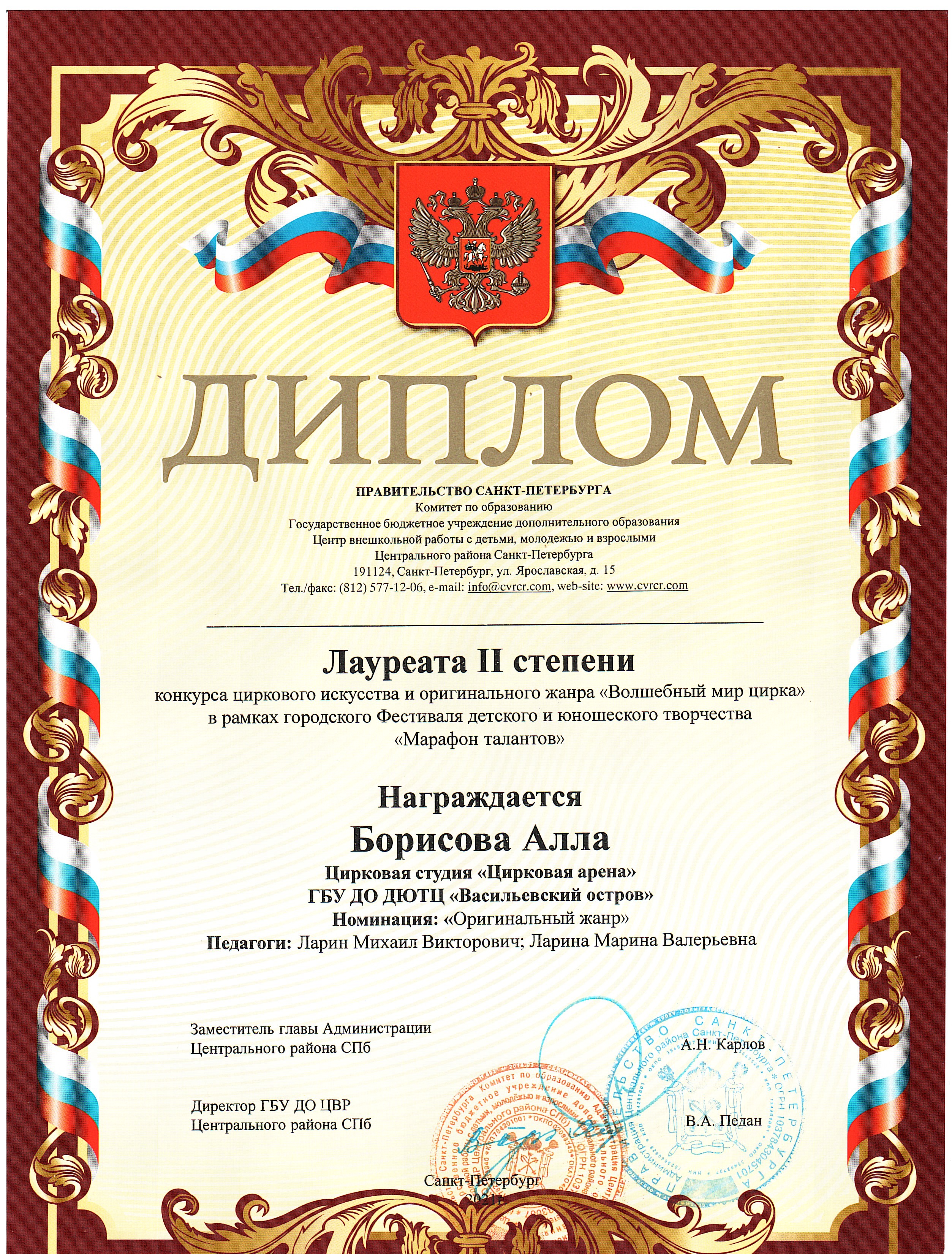 - Дипломы и грамоты победителей, лауреатов, дипломантов городских, региональных, всероссийских, международных конкурсов
