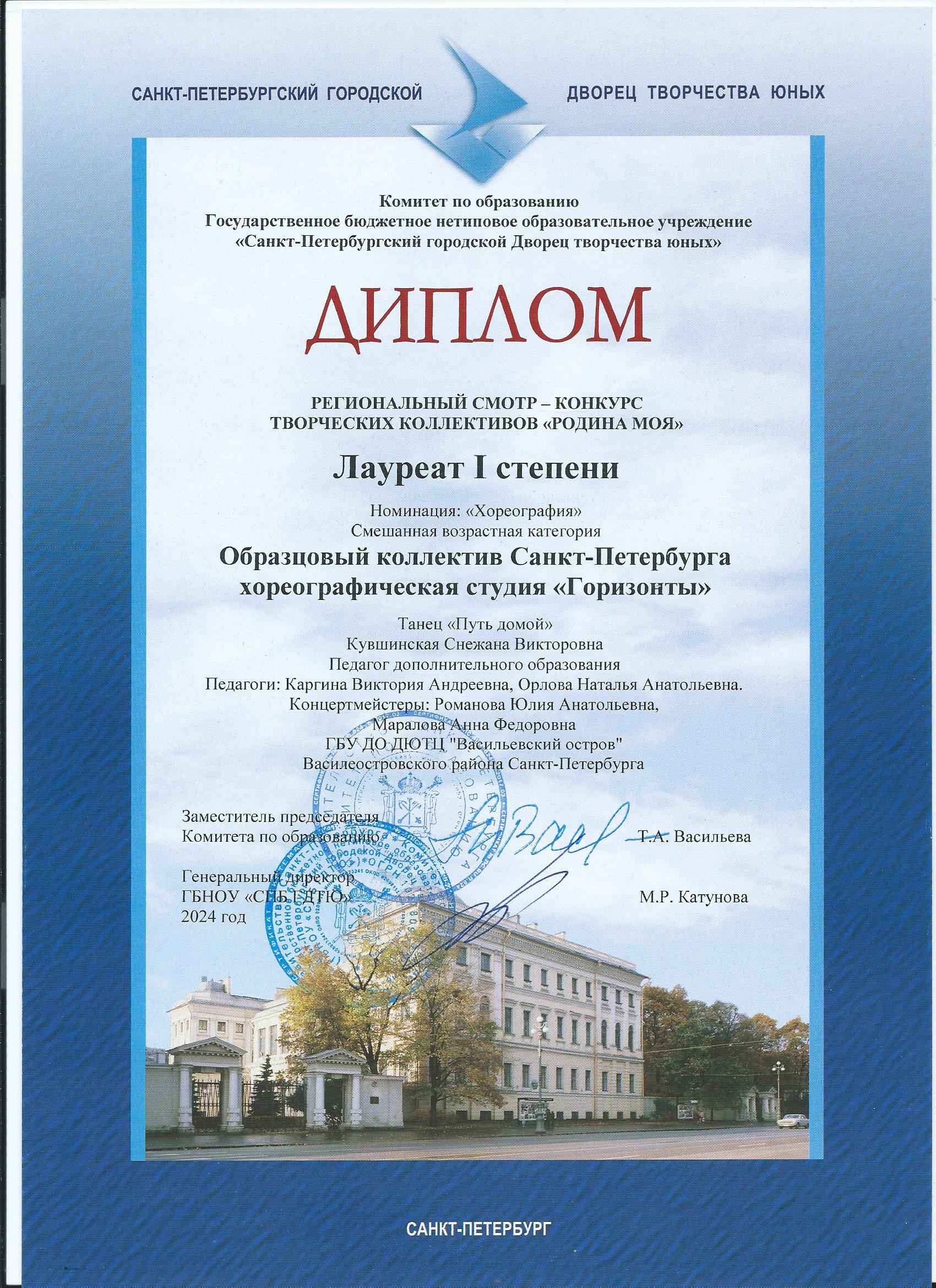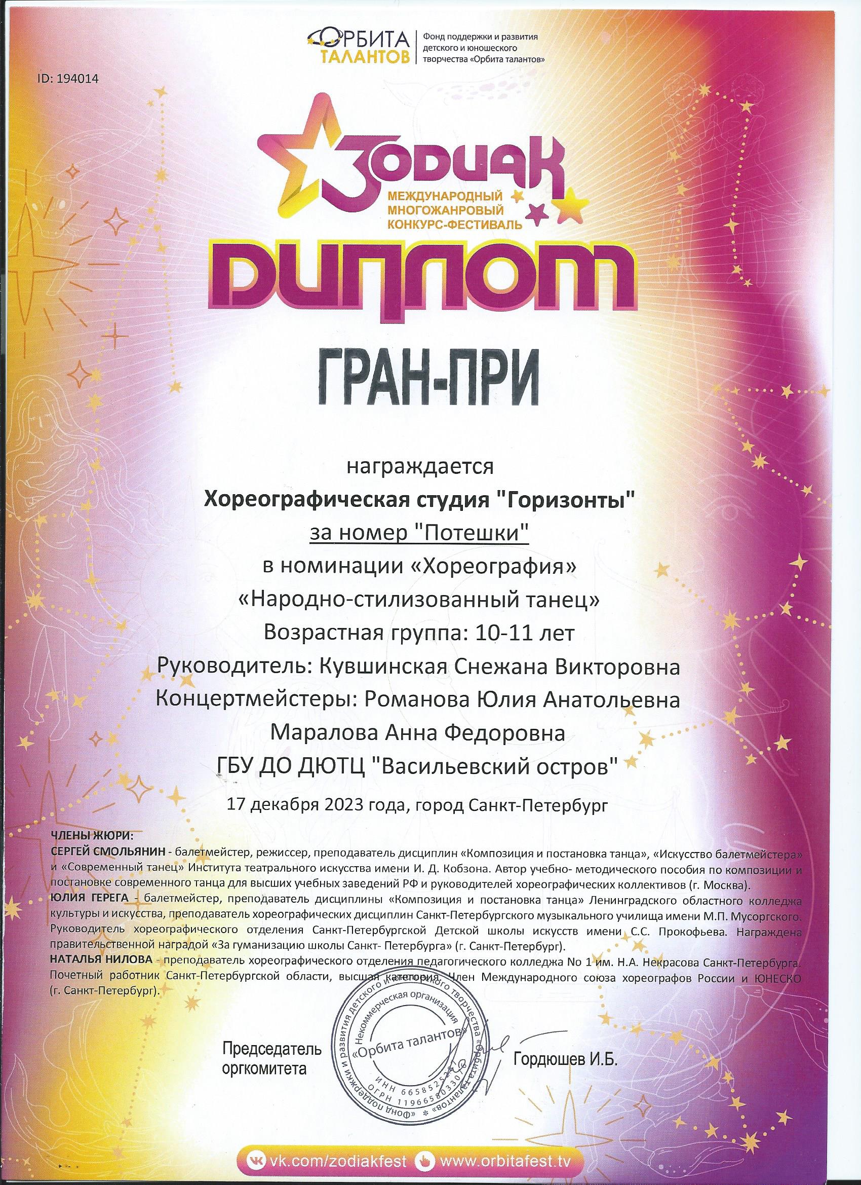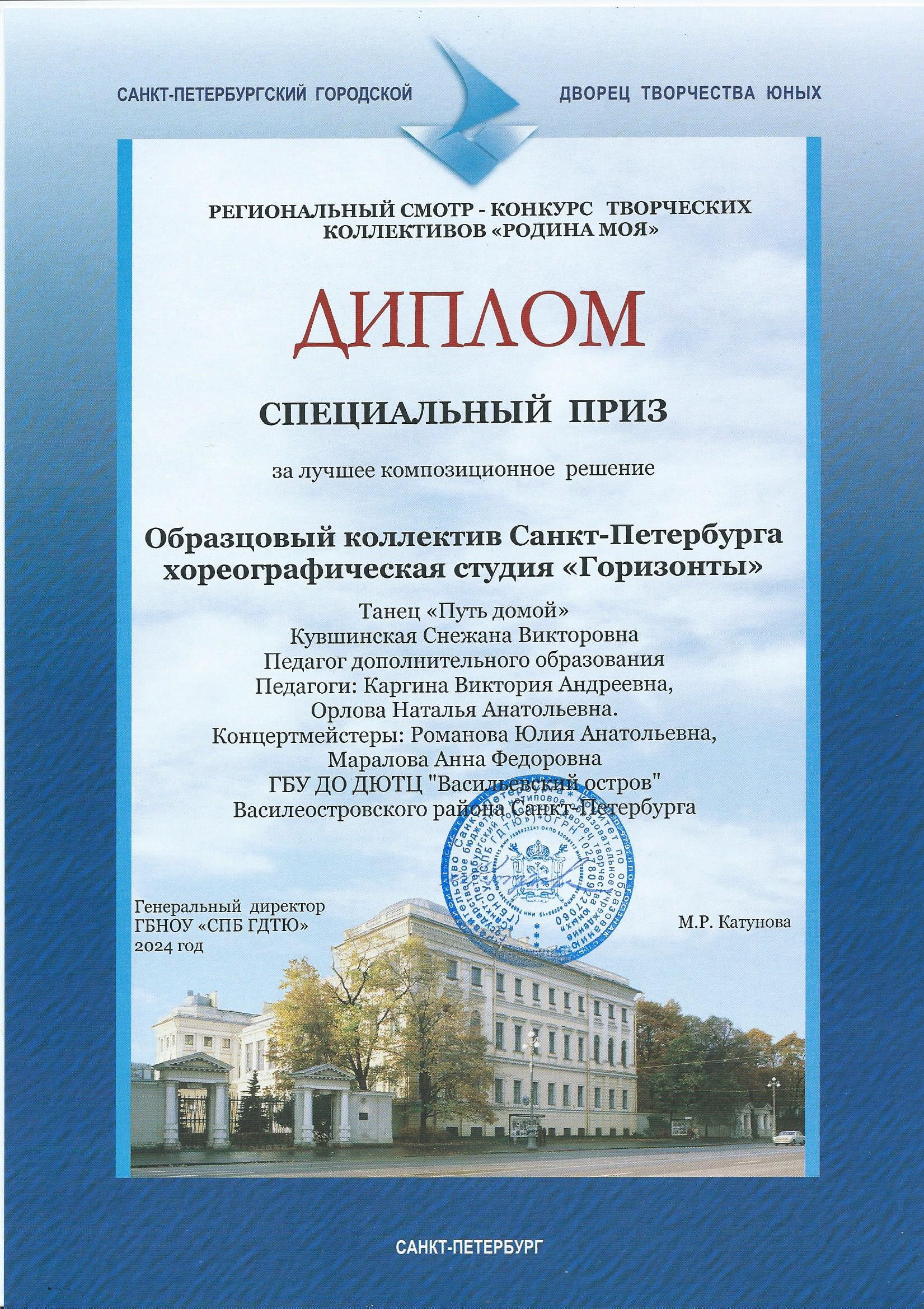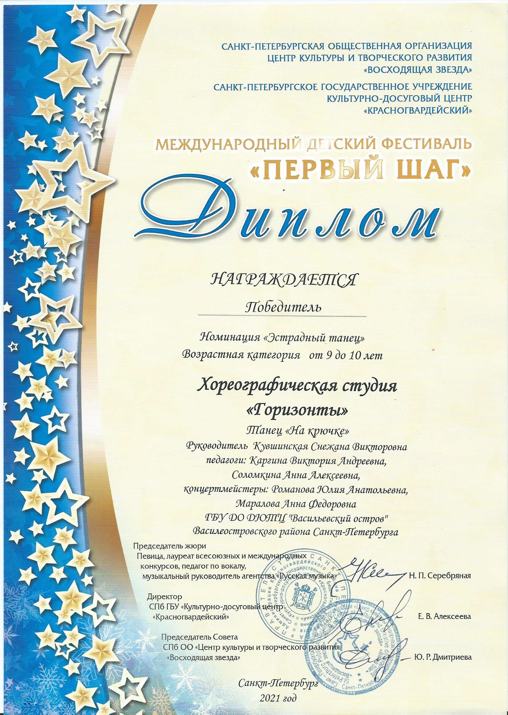 Отзыв Ануфриевой Светланы Геннадьевны, доцента кафедры "Хореографическое искусство" Санкт-Петербургского Гуманитарного Университета профсоюзов, доцента кафедры "Режиссура балета" Санкт-Петербургской государственной Консерватории имени Н.А. Римского-Корсакова, обладателя Гран-при и лауреата международных и всероссийских конкурсов по балетмейстерскому и исполнительскому искусству.