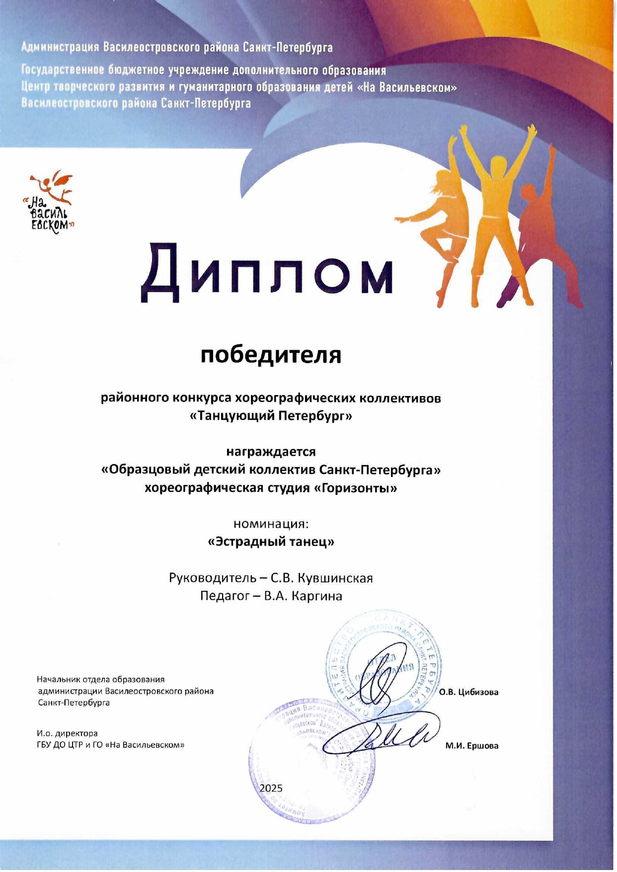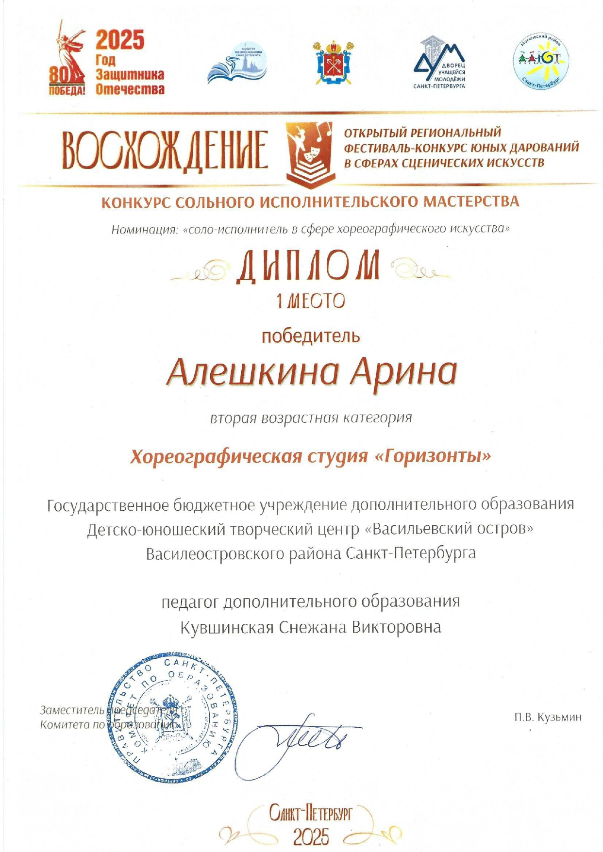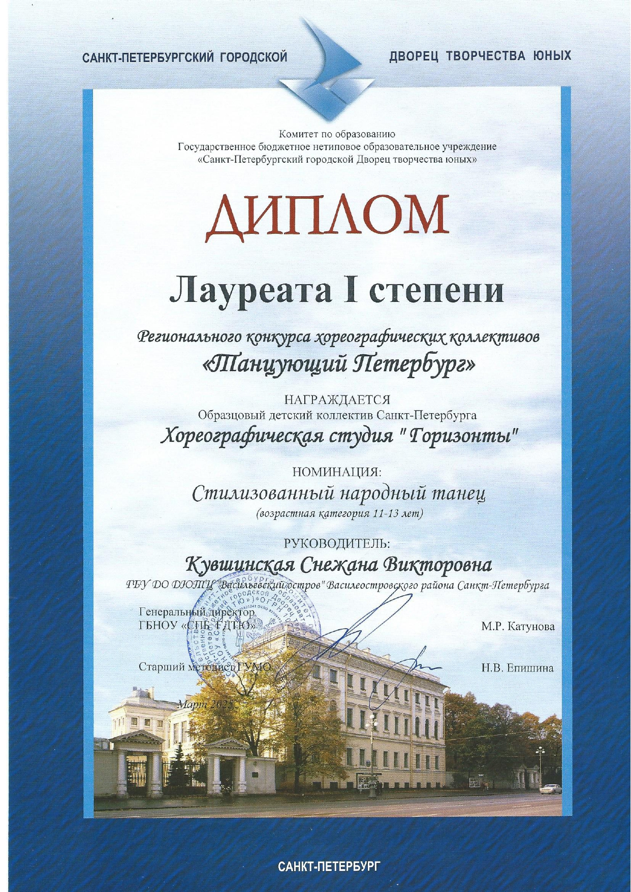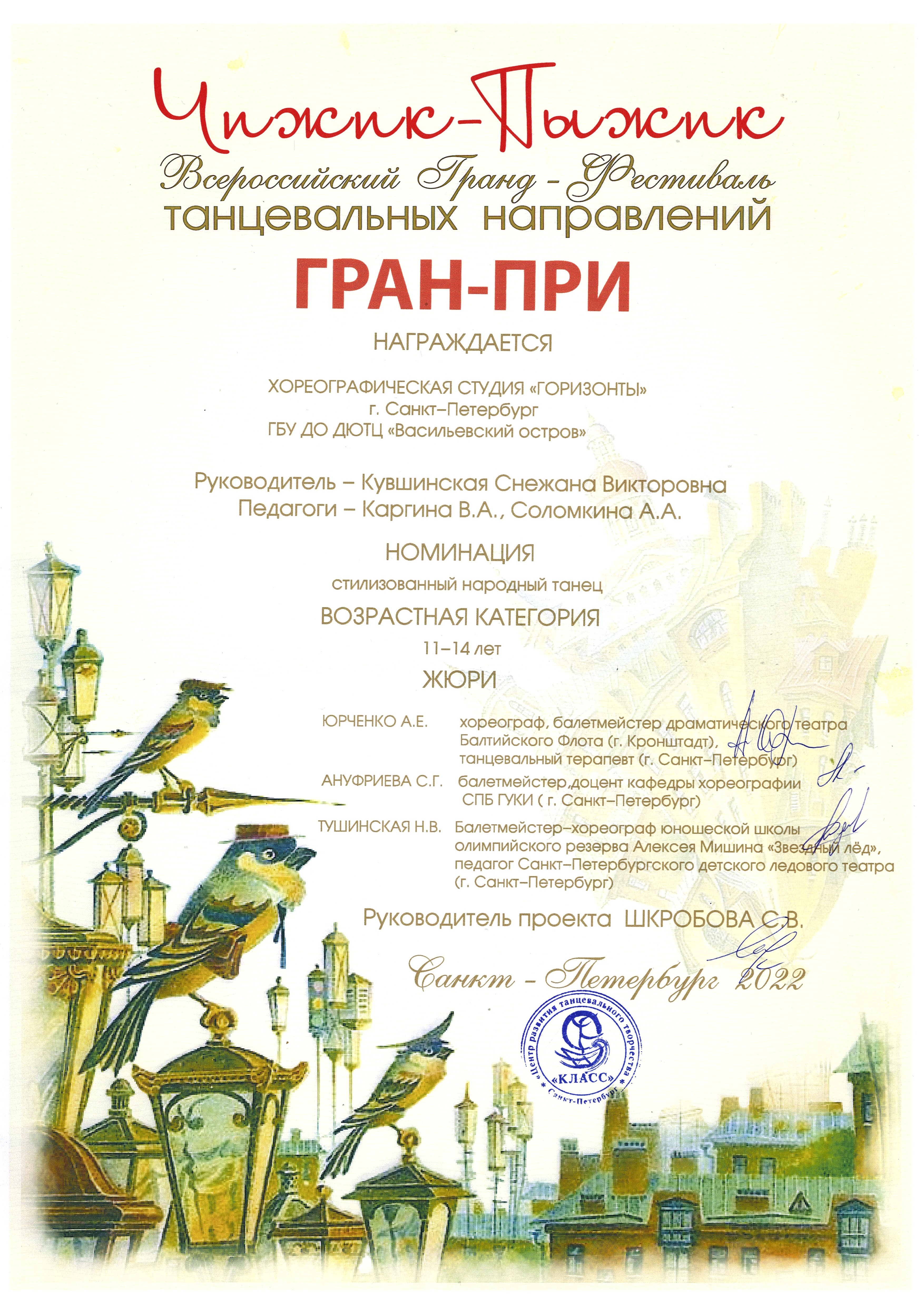 Отзыв Ануфриевой Светланы Геннадьевны, доцента кафедры "Хореографическое искусство" Санкт-Петербургского Гуманитарного Университета профсоюзов, доцента кафедры "Режиссура балета" Санкт-Петербургской государственной Консерватории имени Н.А. Римского-Корсакова, обладателя Гран-при и лауреата международных и всероссийских конкурсов по балетмейстерскому и исполнительскому искусству.