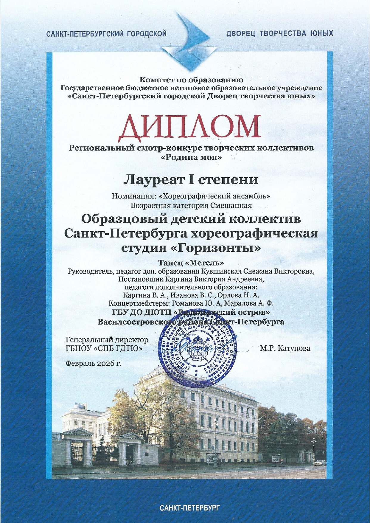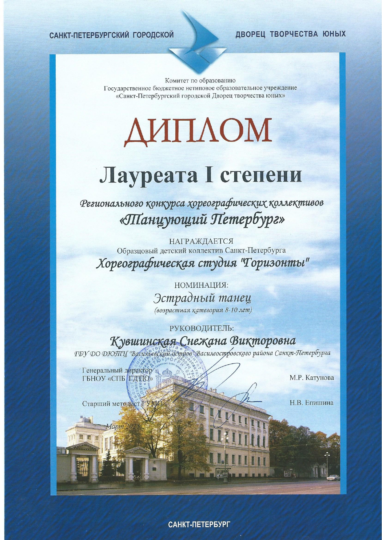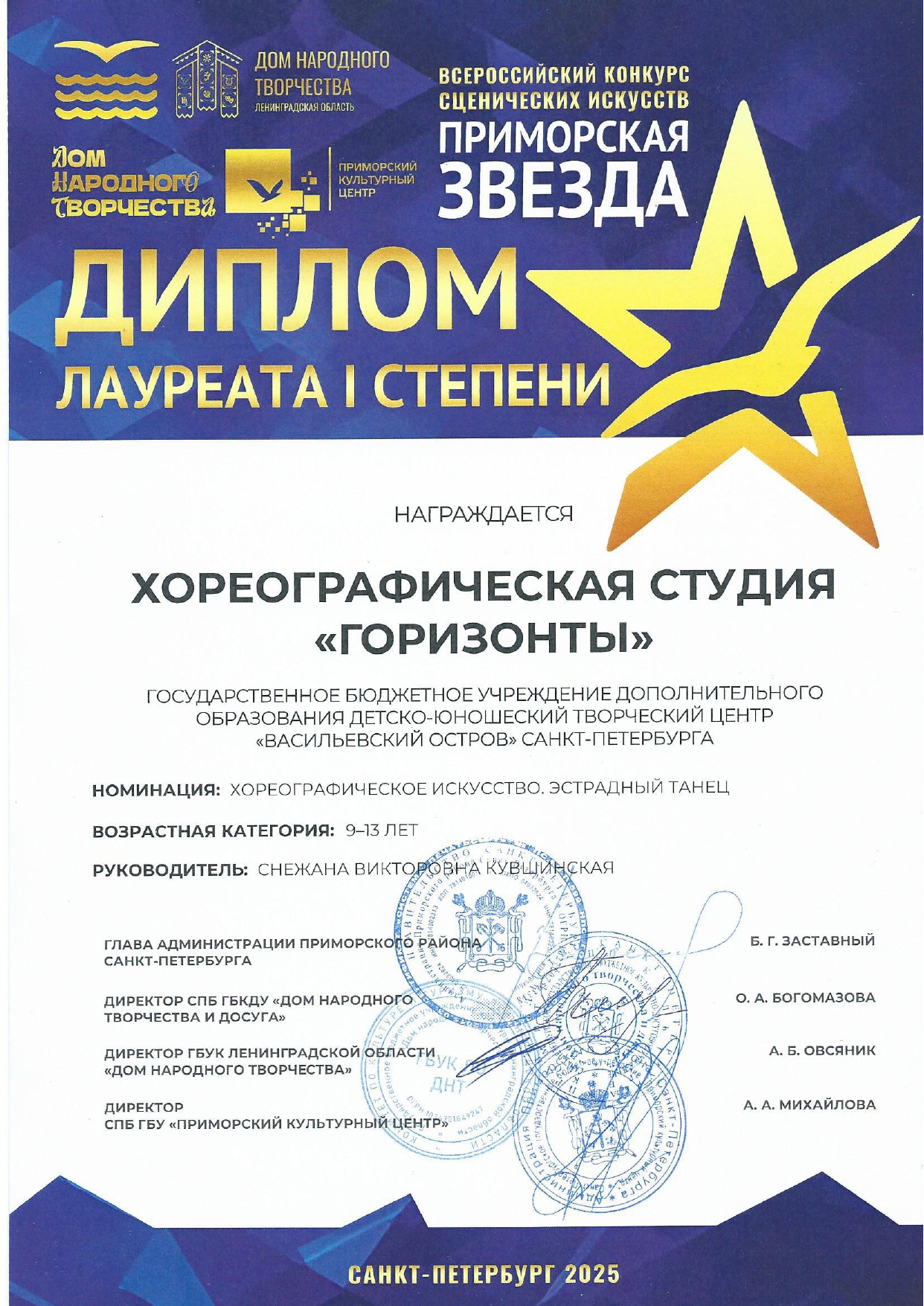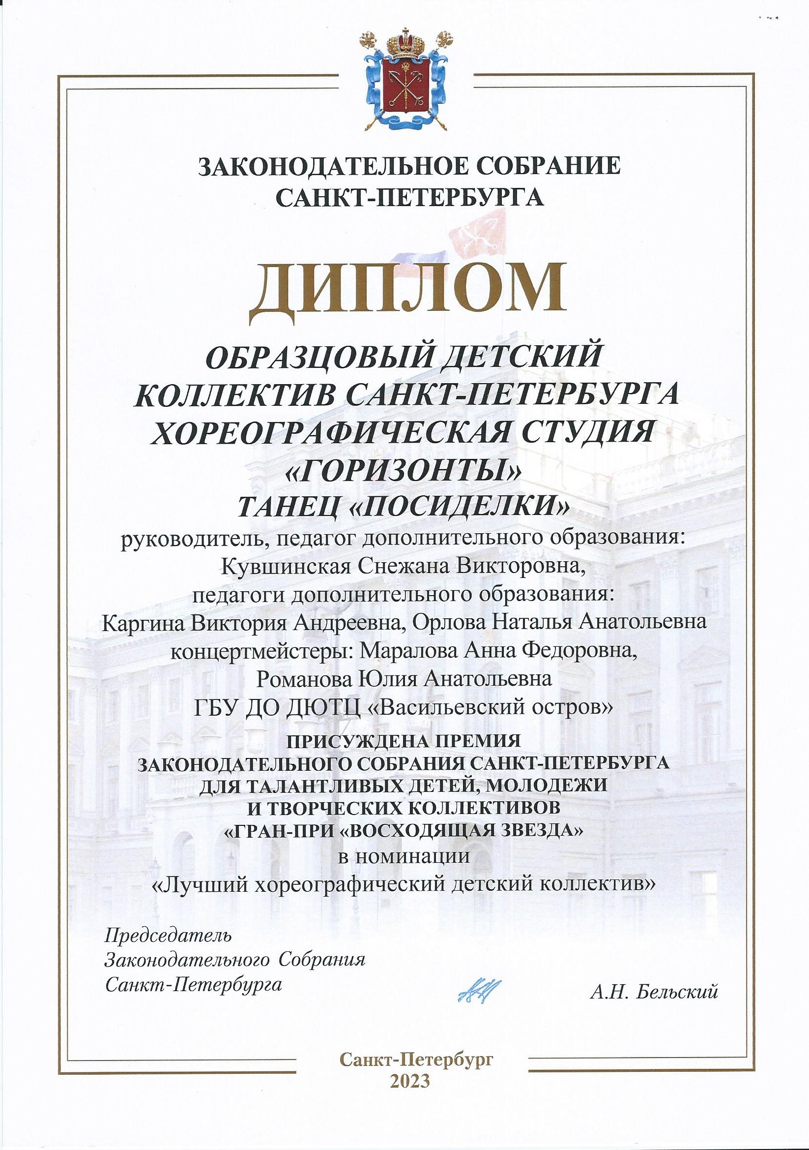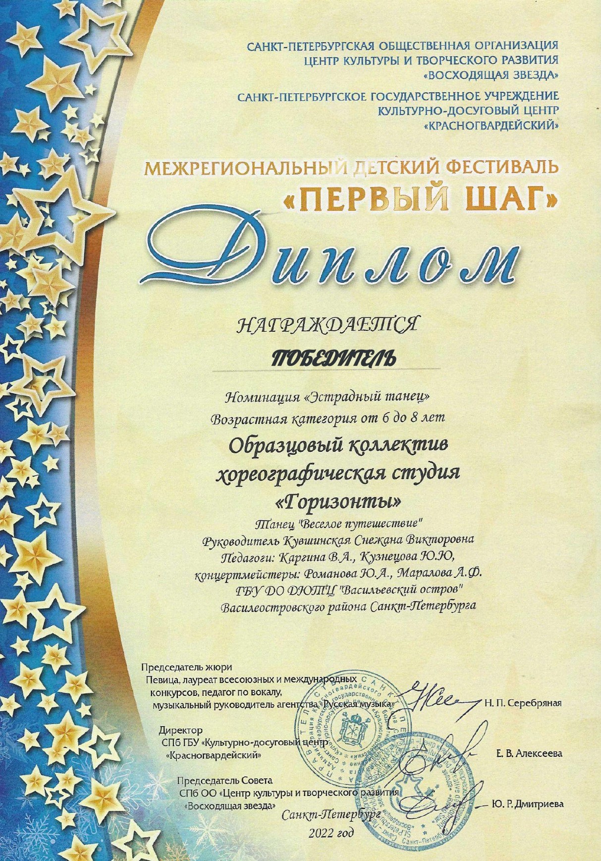 Отзыв Ануфриевой Светланы Геннадьевны, доцента кафедры "Хореографическое искусство" Санкт-Петербургского Гуманитарного Университета профсоюзов, доцента кафедры "Режиссура балета" Санкт-Петербургской государственной Консерватории имени Н.А. Римского-Корсакова, обладателя Гран-при и лауреата международных и всероссийских конкурсов по балетмейстерскому и исполнительскому искусству.