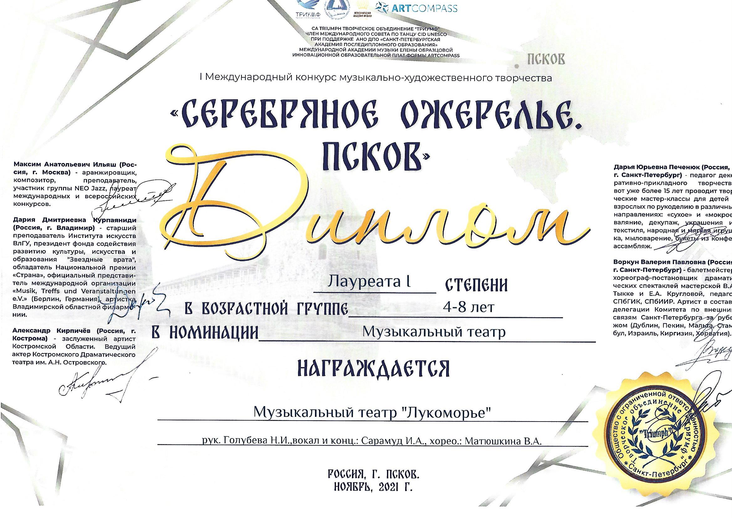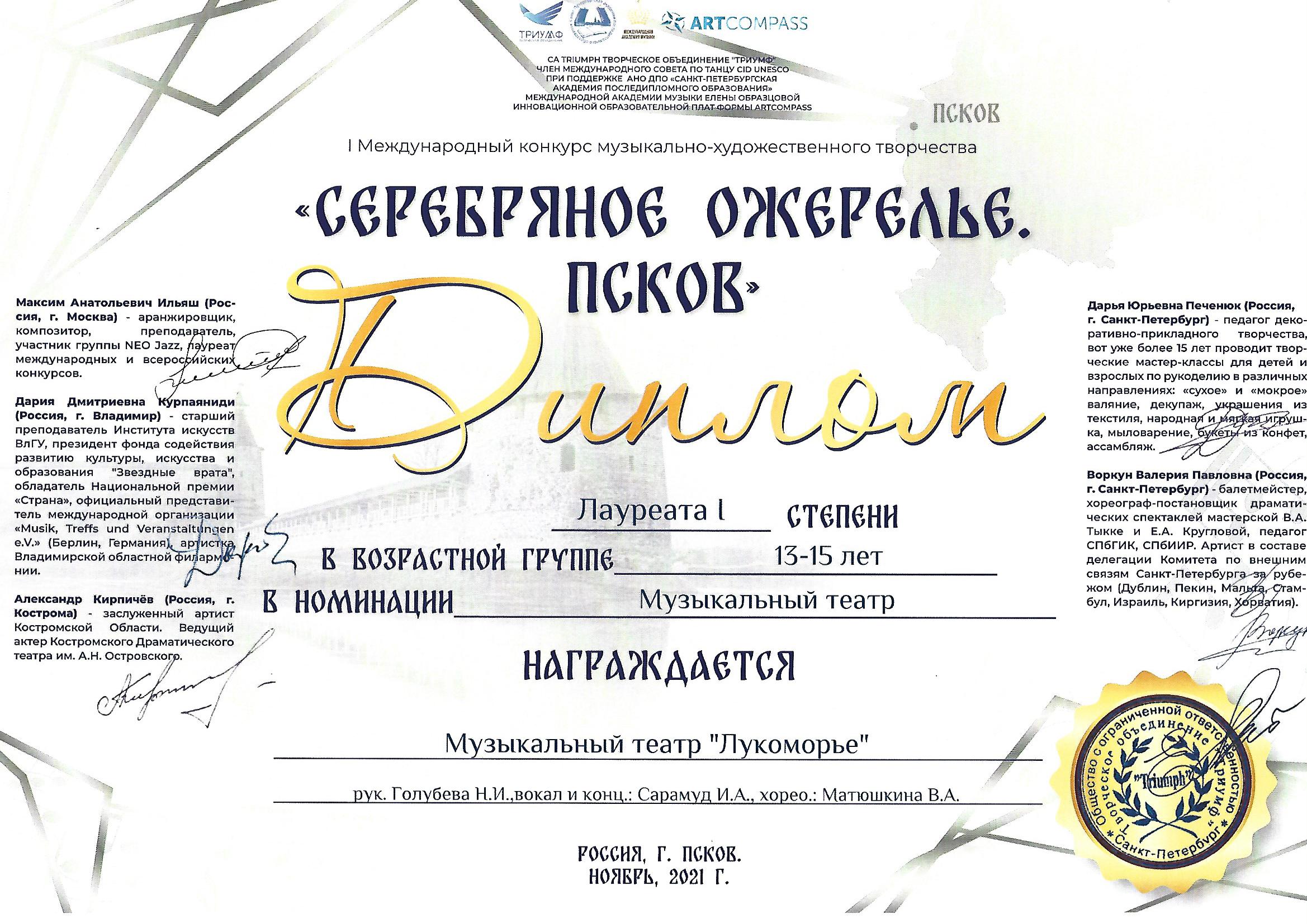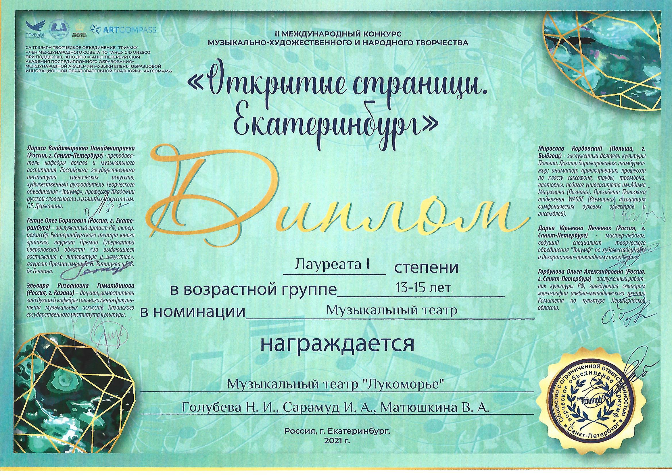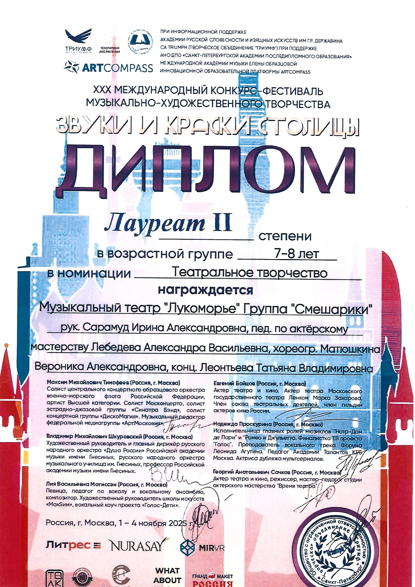 - Дипломы и грамоты победителей, лауреатов, дипломантов городских, региональных, всероссийских, международных конкурсов
