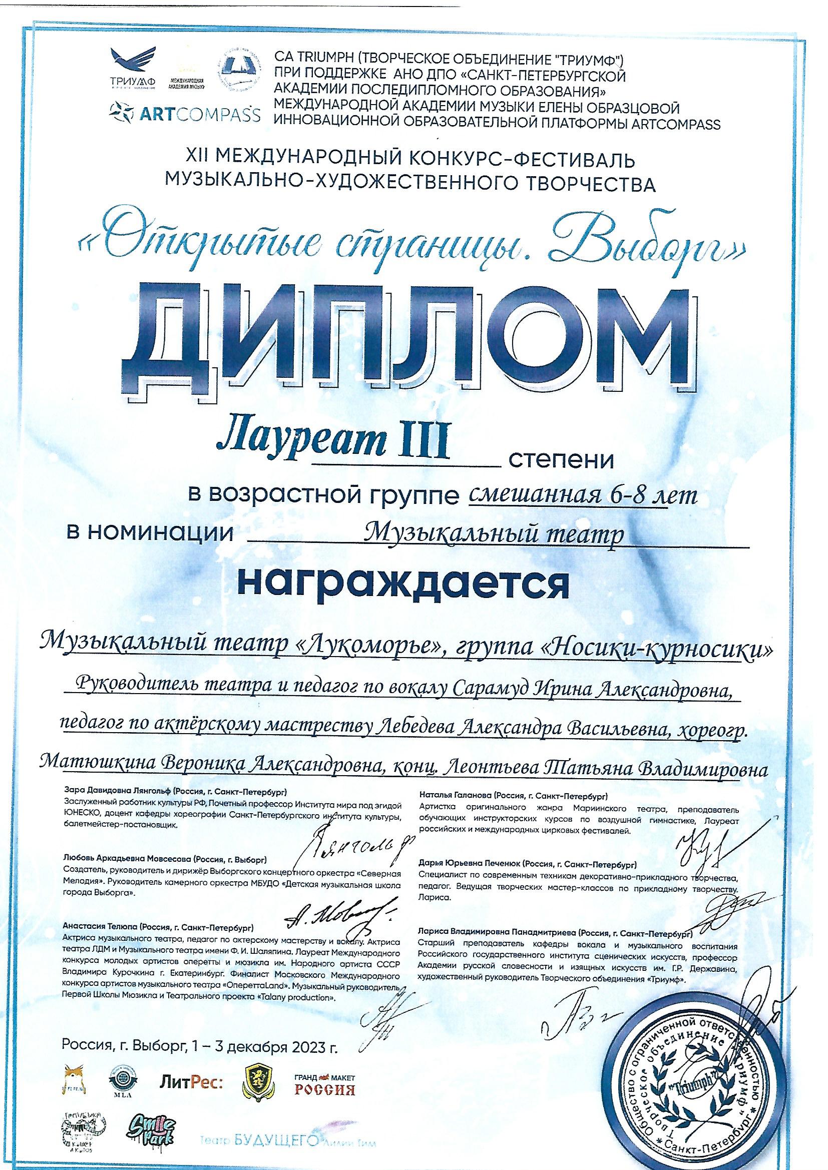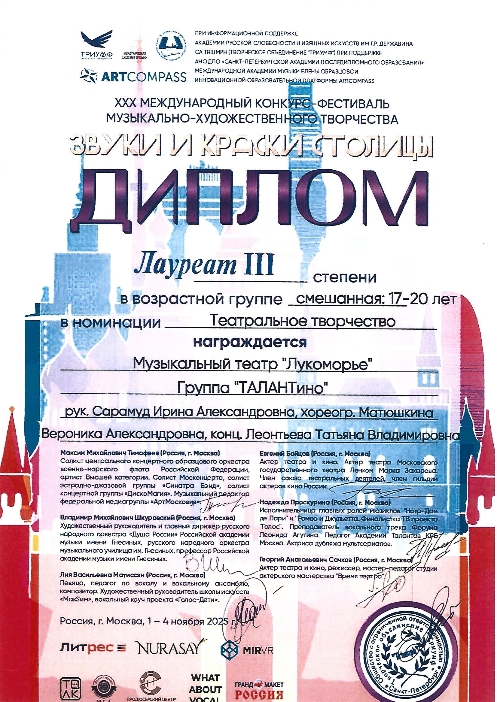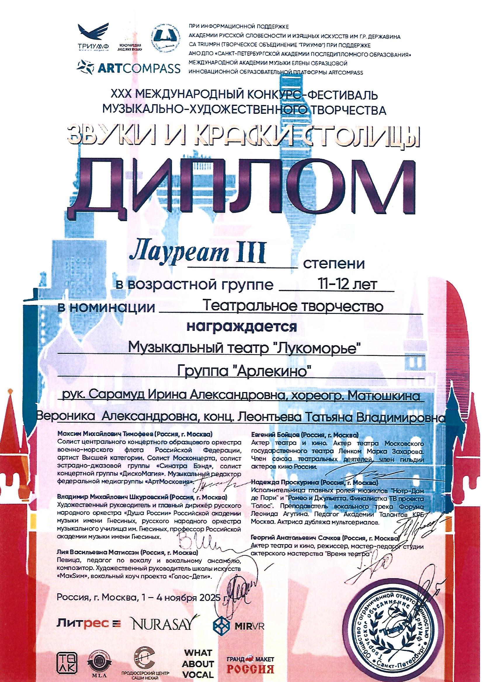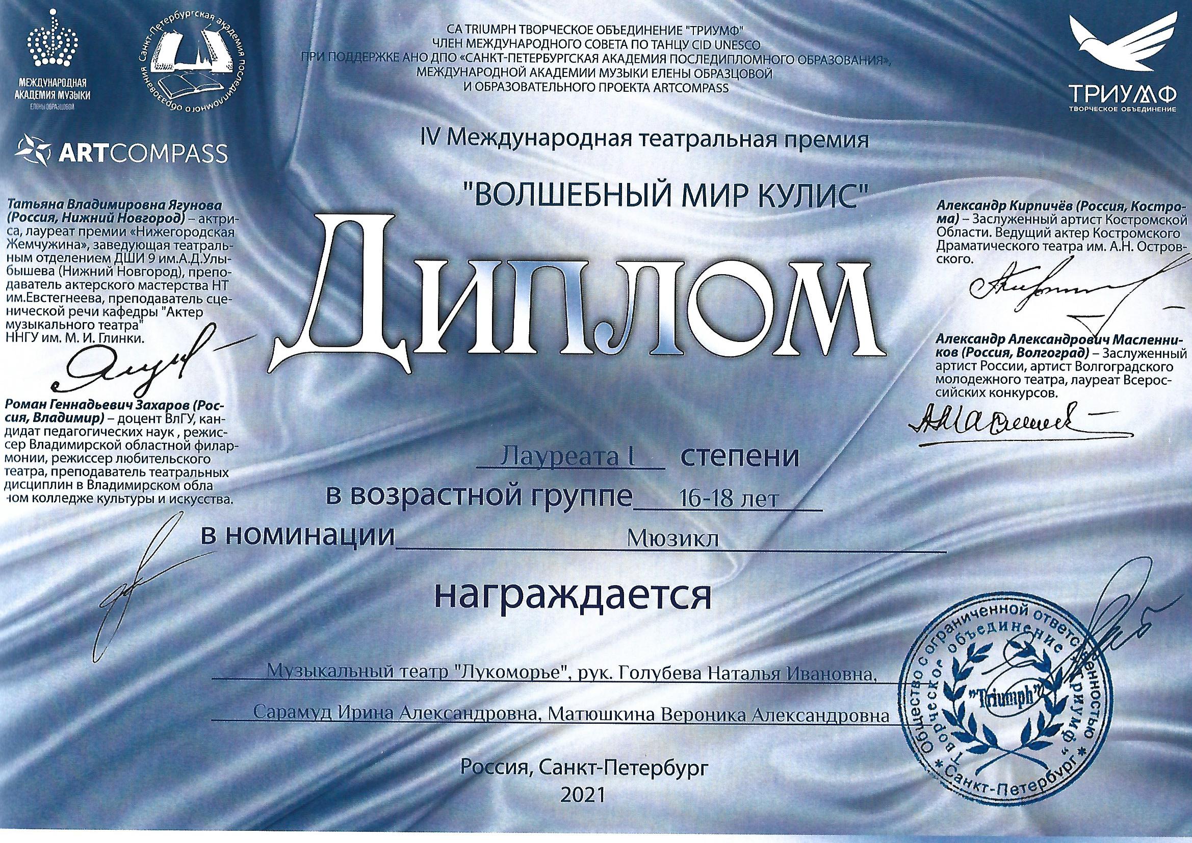 - Дипломы и грамоты победителей, лауреатов, дипломантов городских, региональных, всероссийских, международных конкурсов