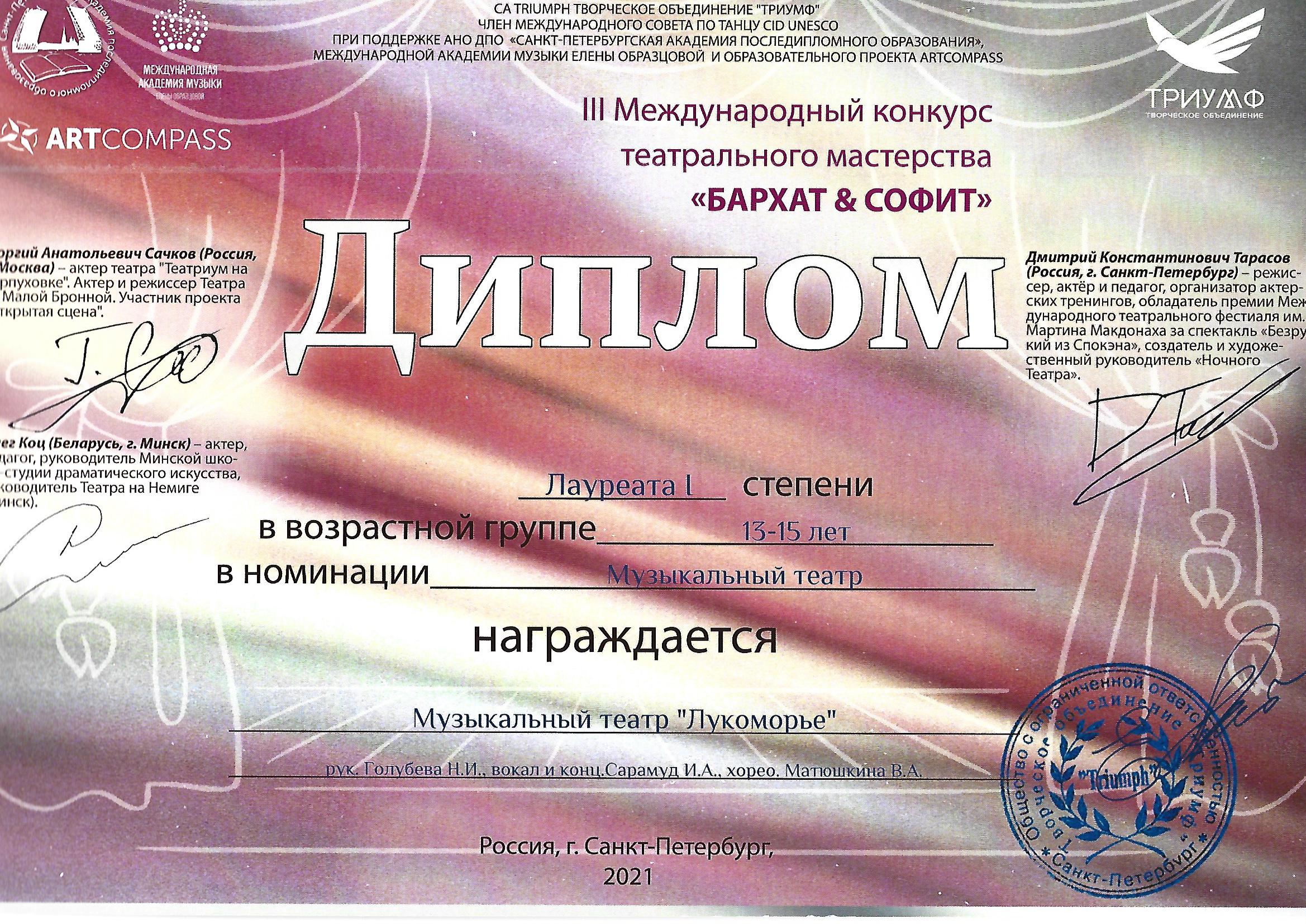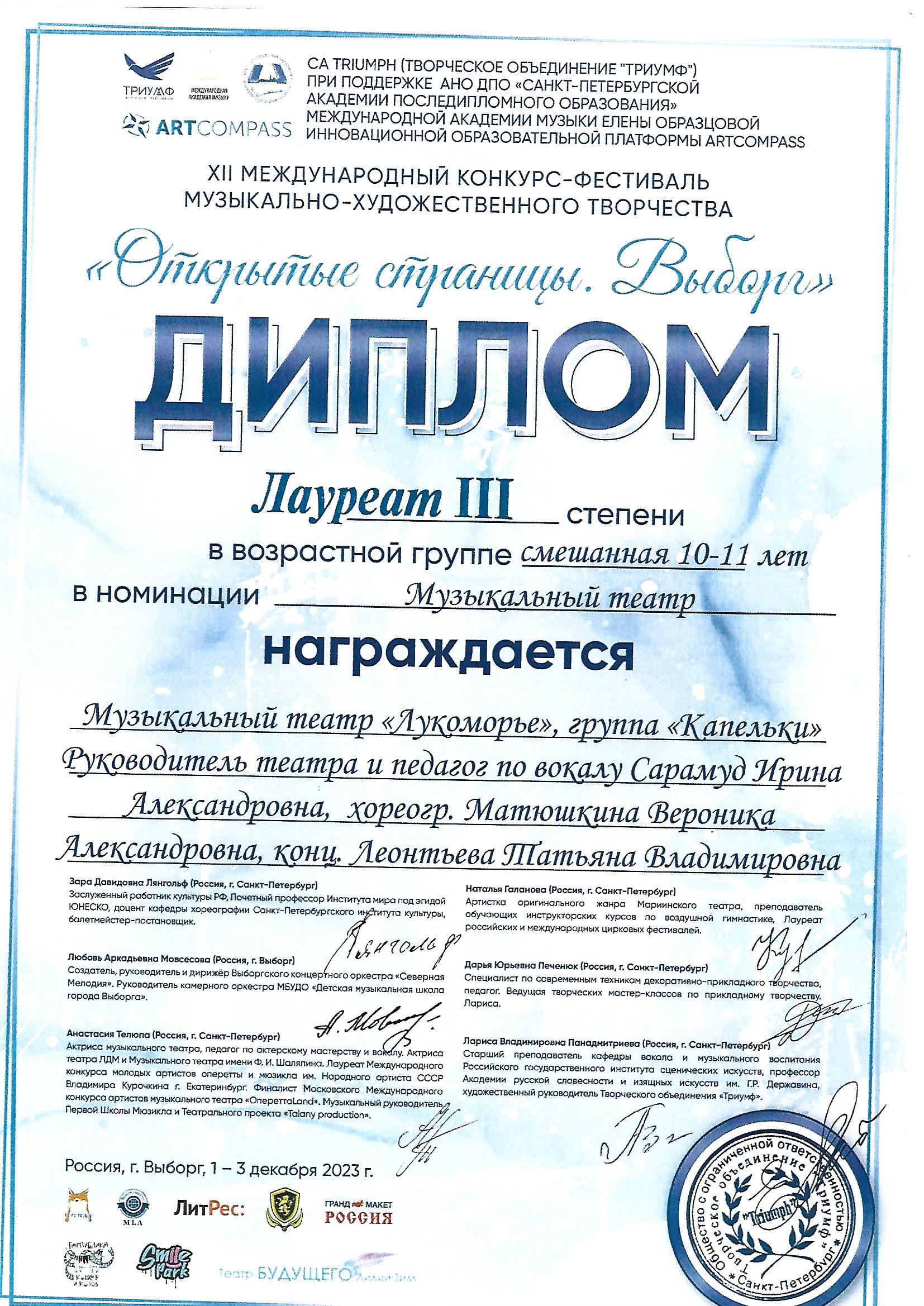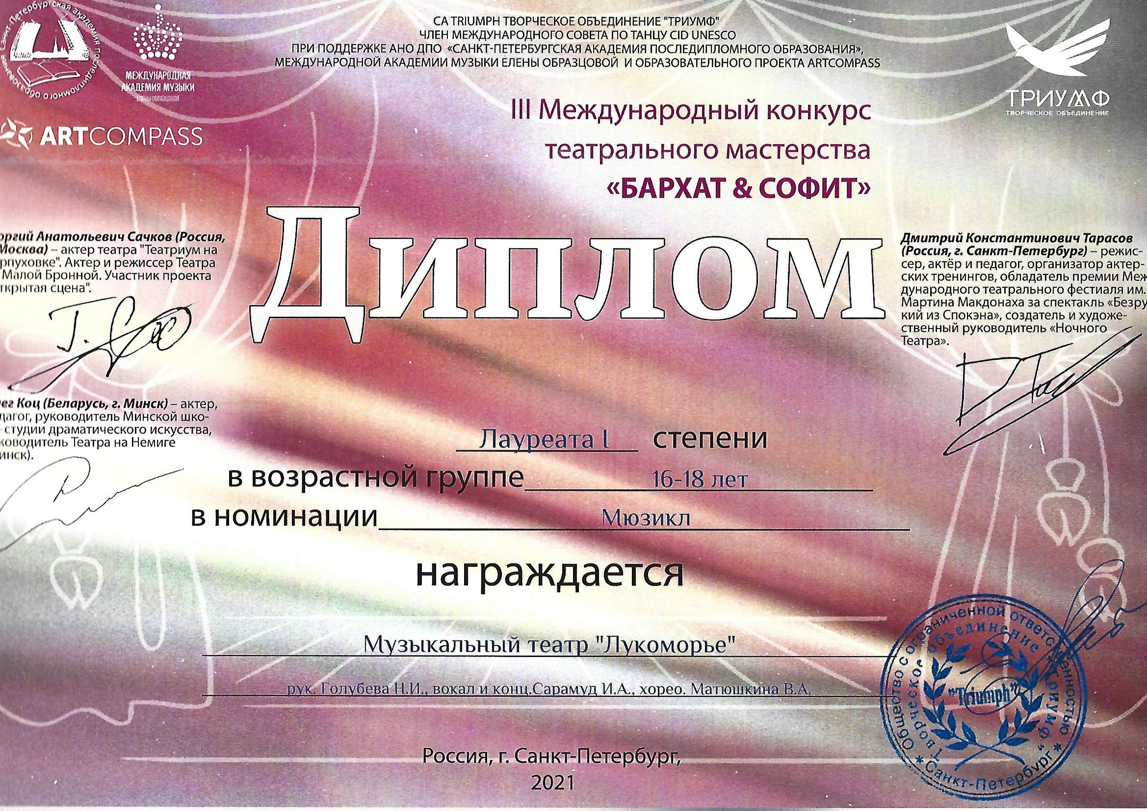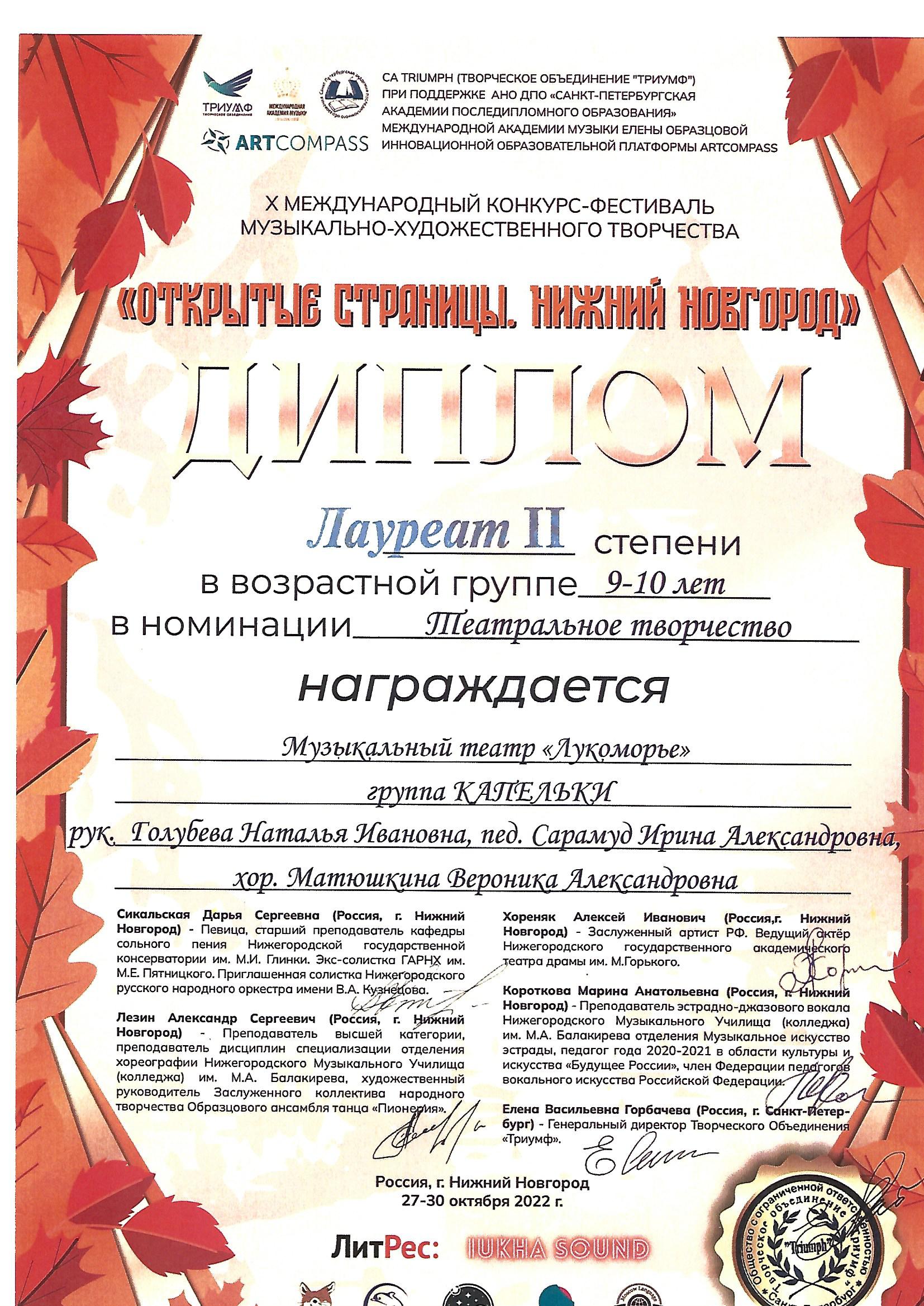 - Дипломы и грамоты победителей, лауреатов, дипломантов городских, региональных, всероссийских, международных конкурсов