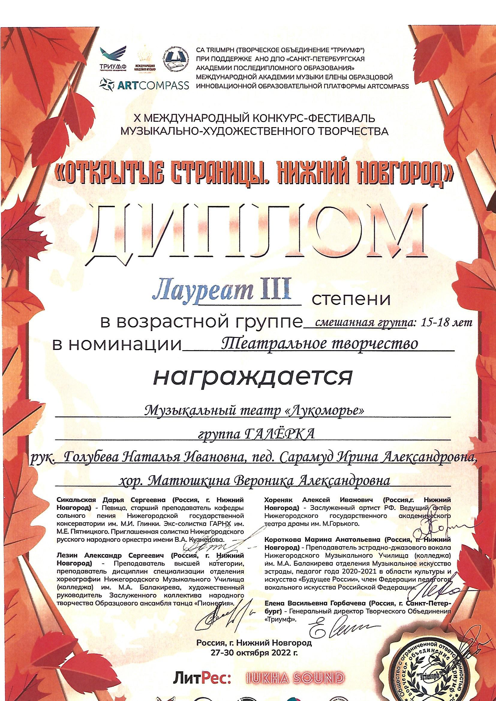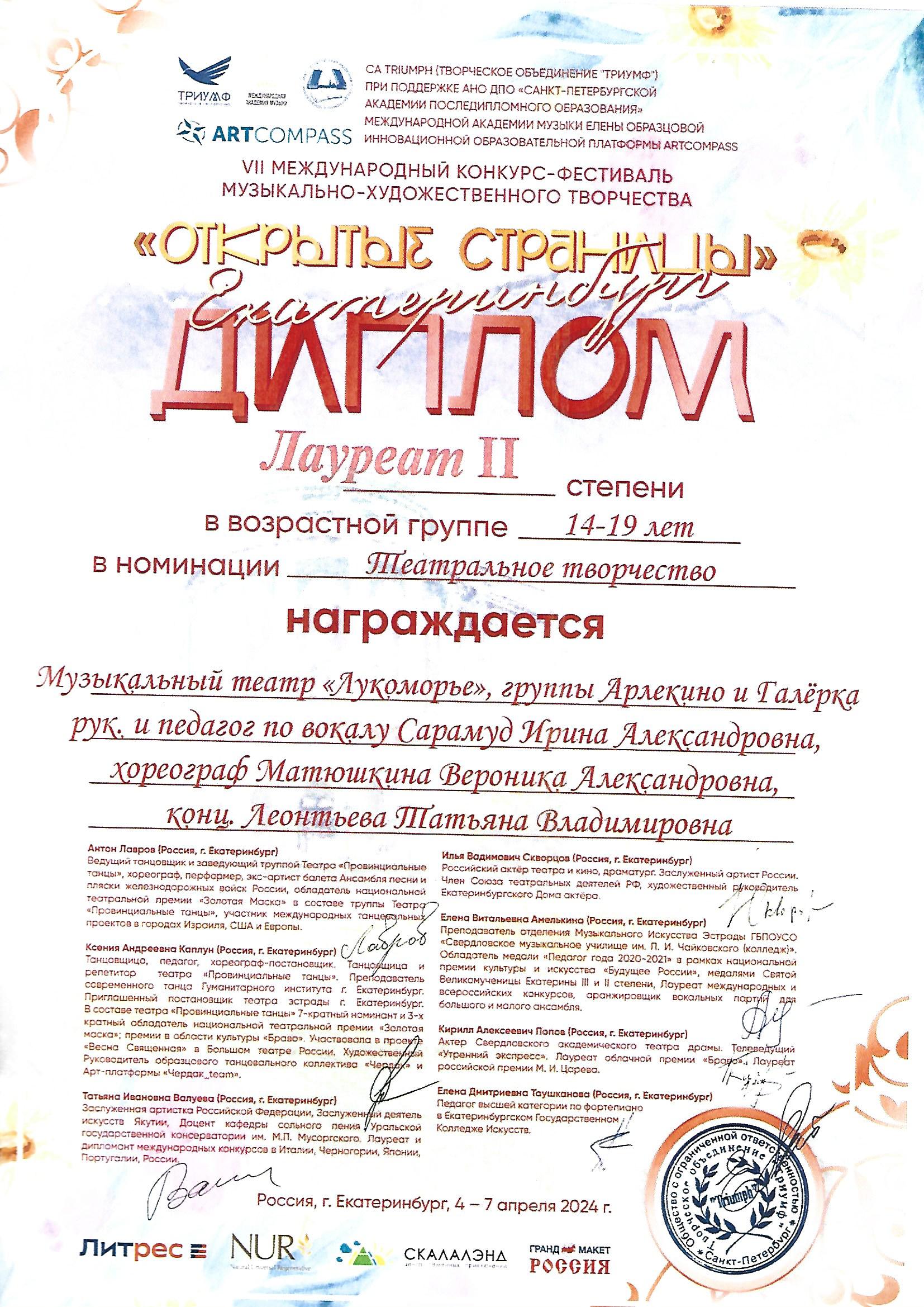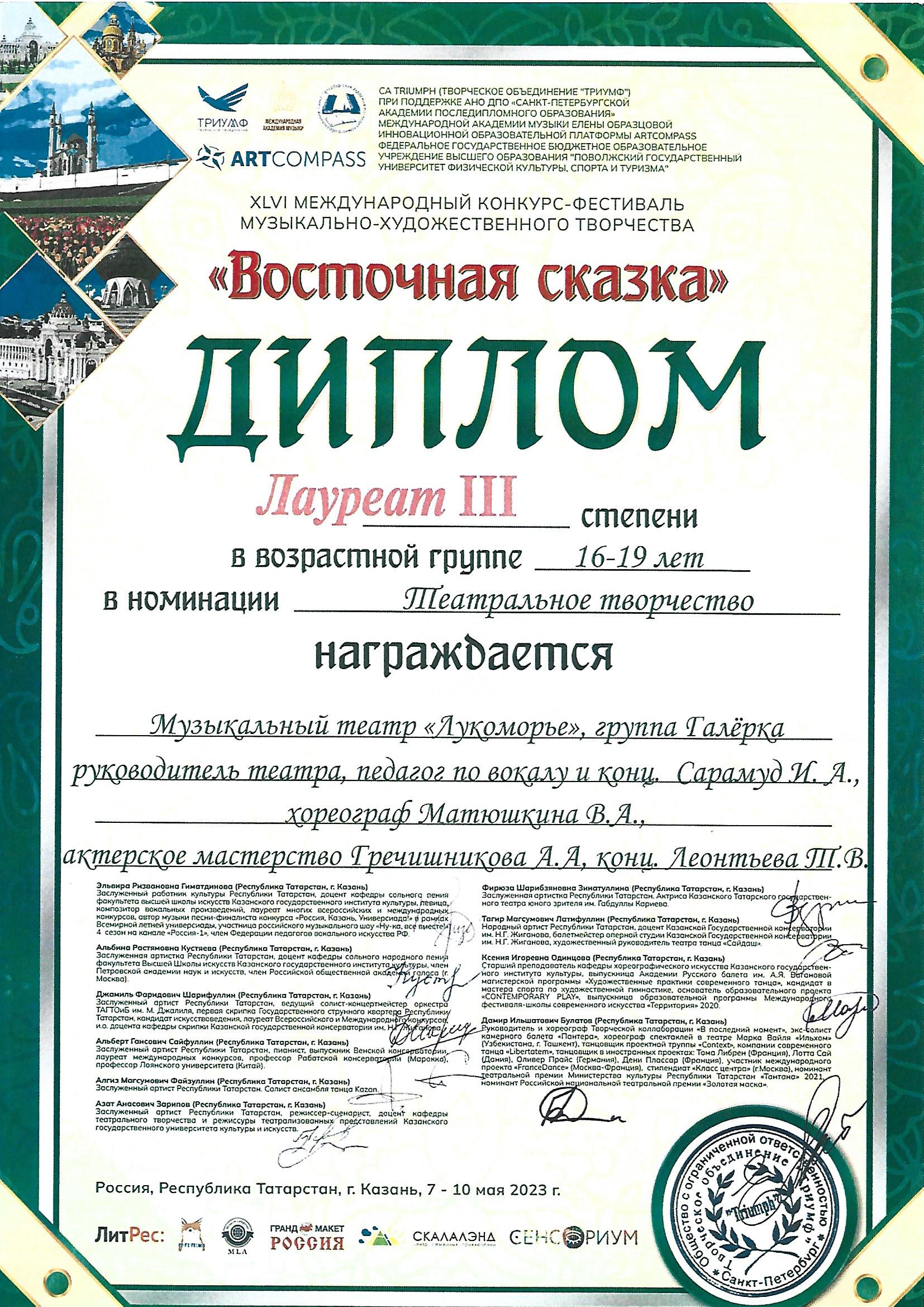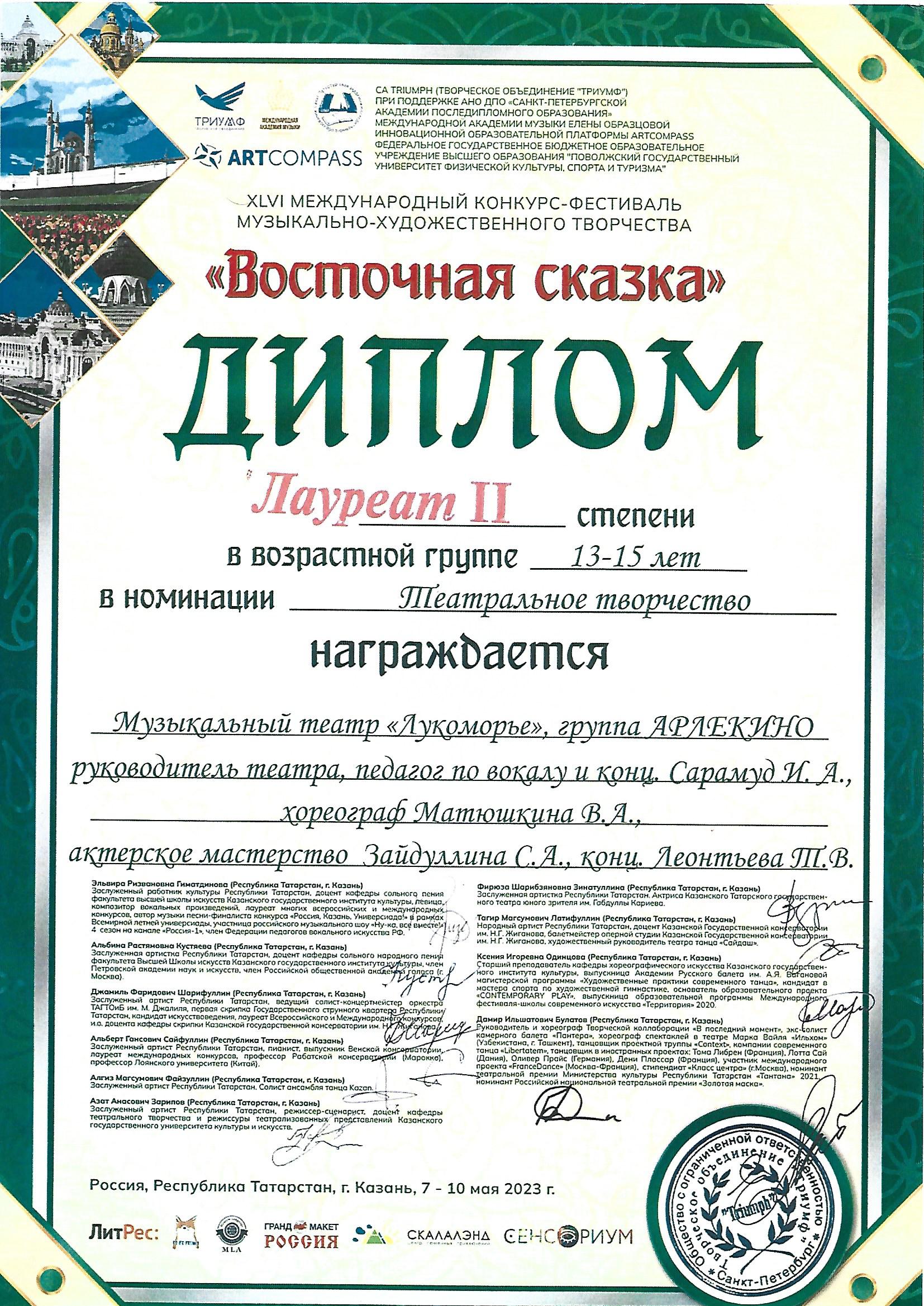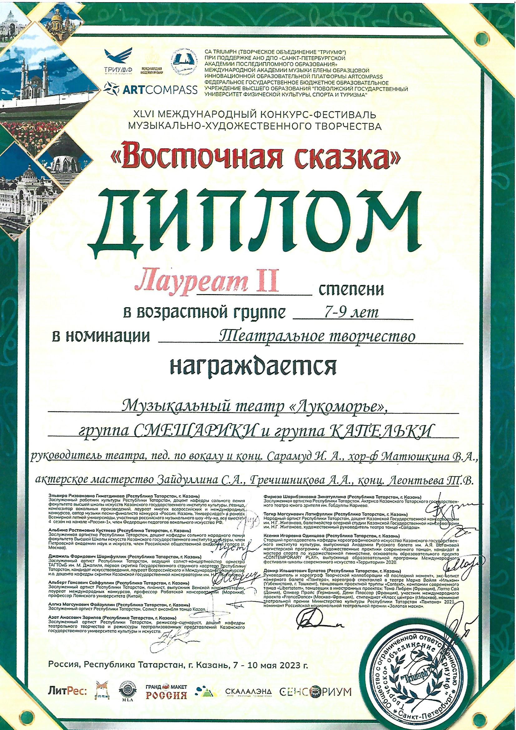 Материалы, отображающие образовательную активность педагогов музыкального театра "Лукоморье"