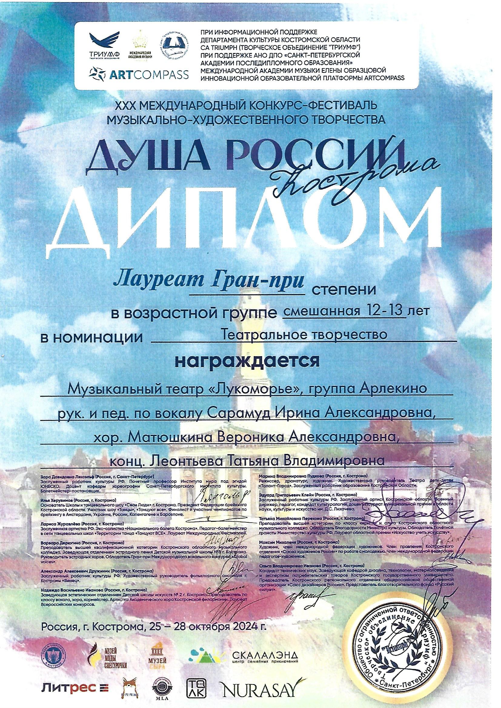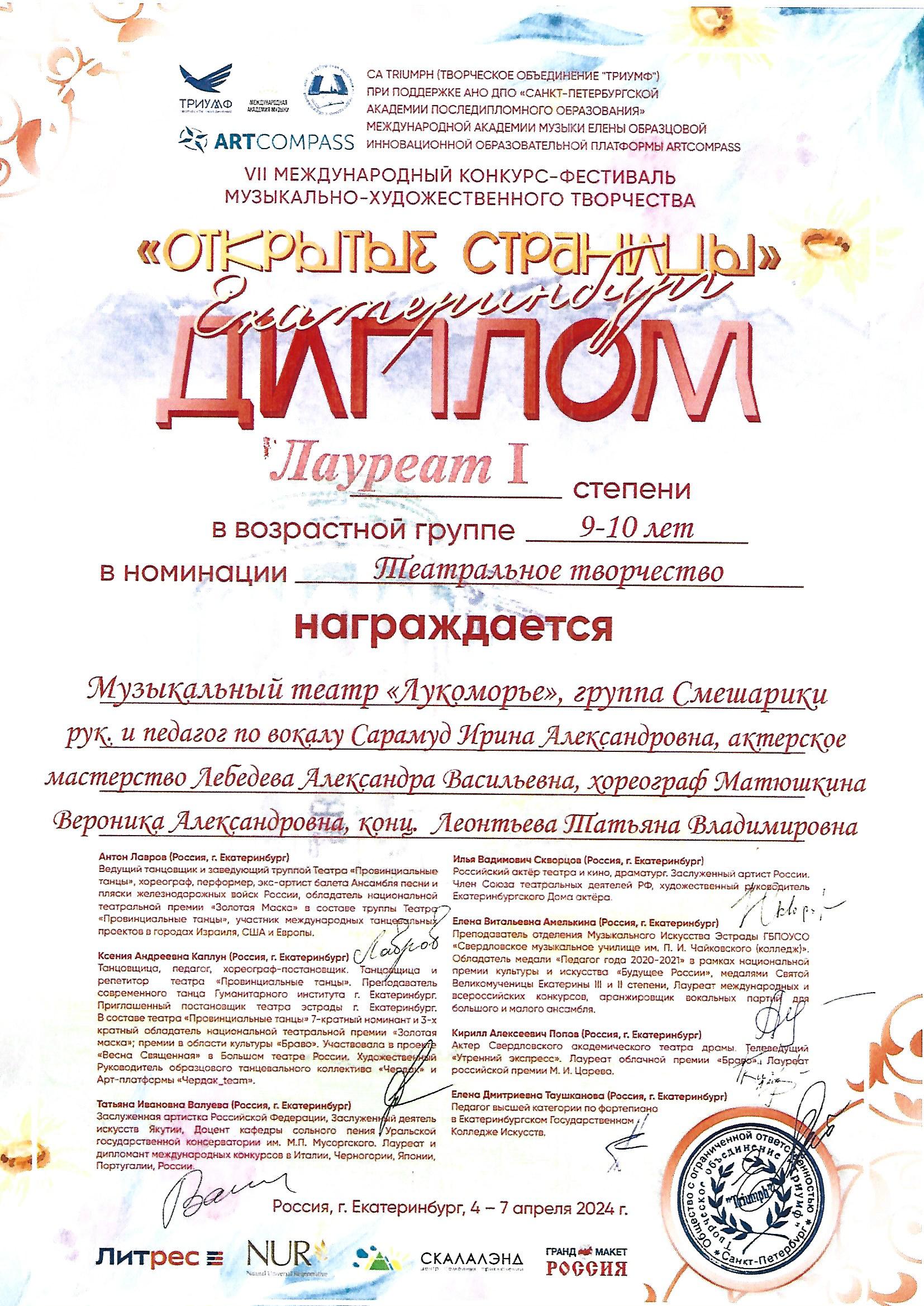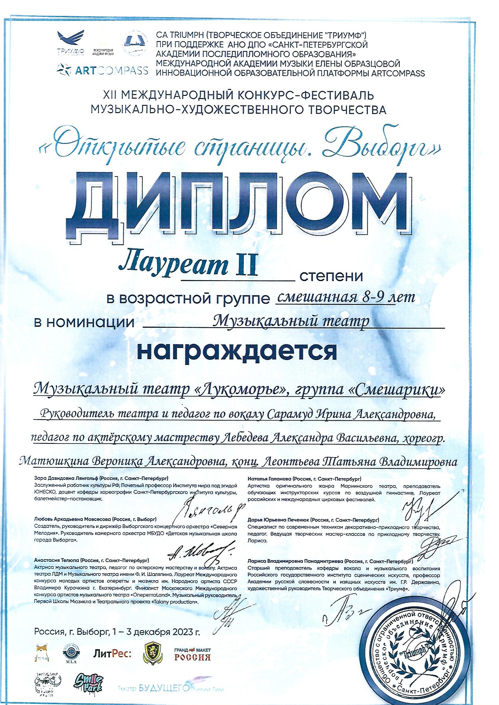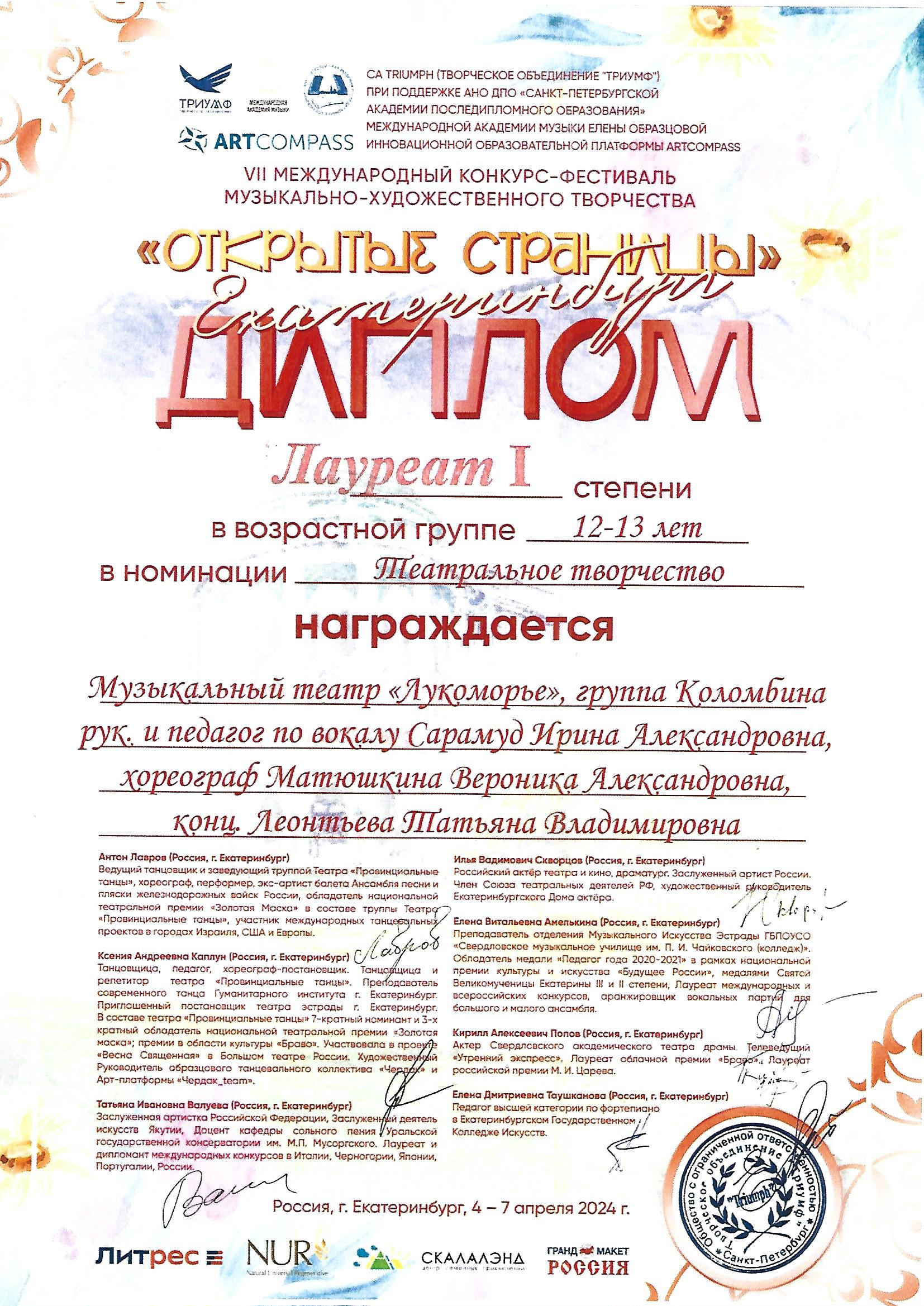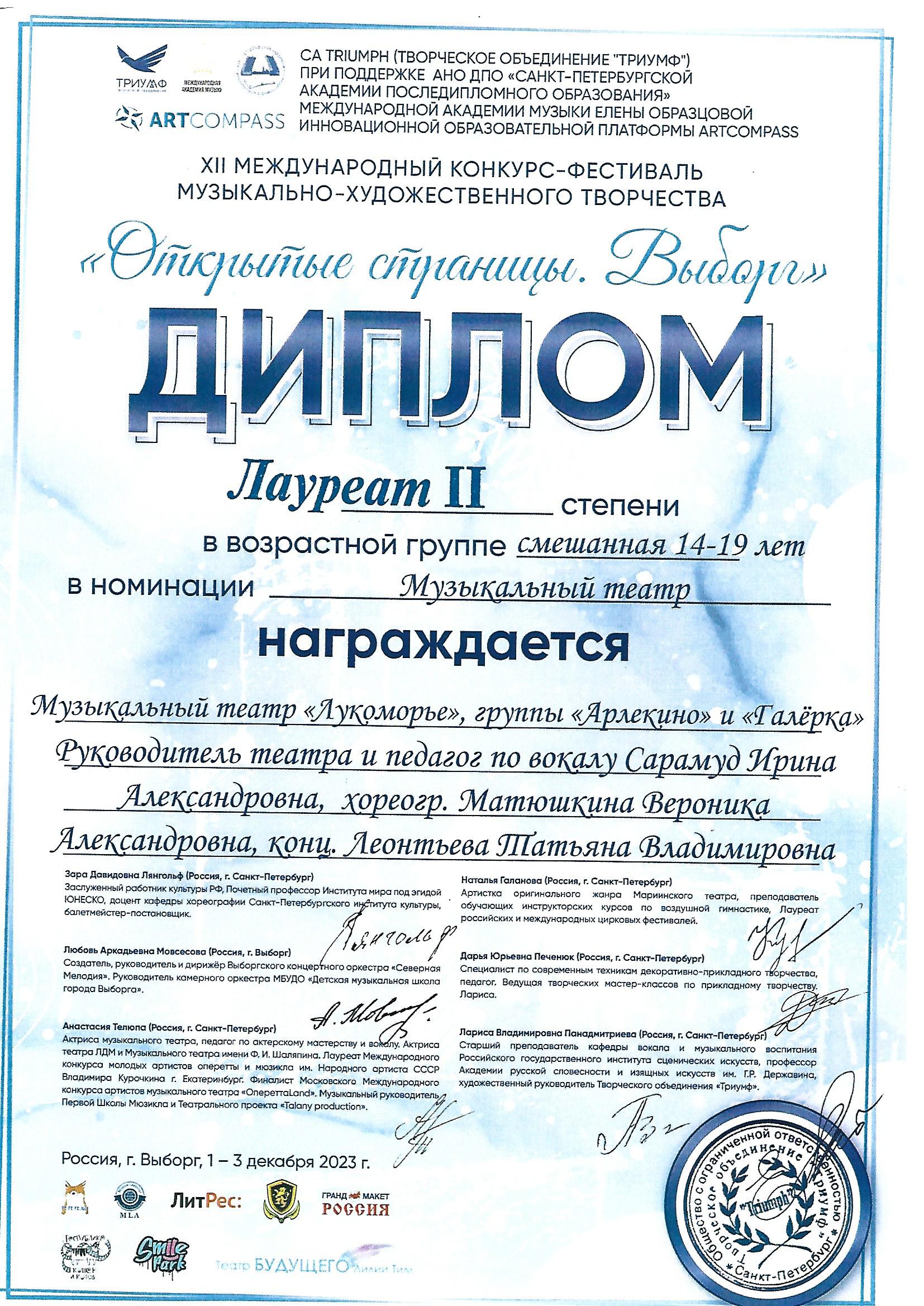 Материалы, отображающие образовательную активность педагогов музыкального театра "Лукоморье"