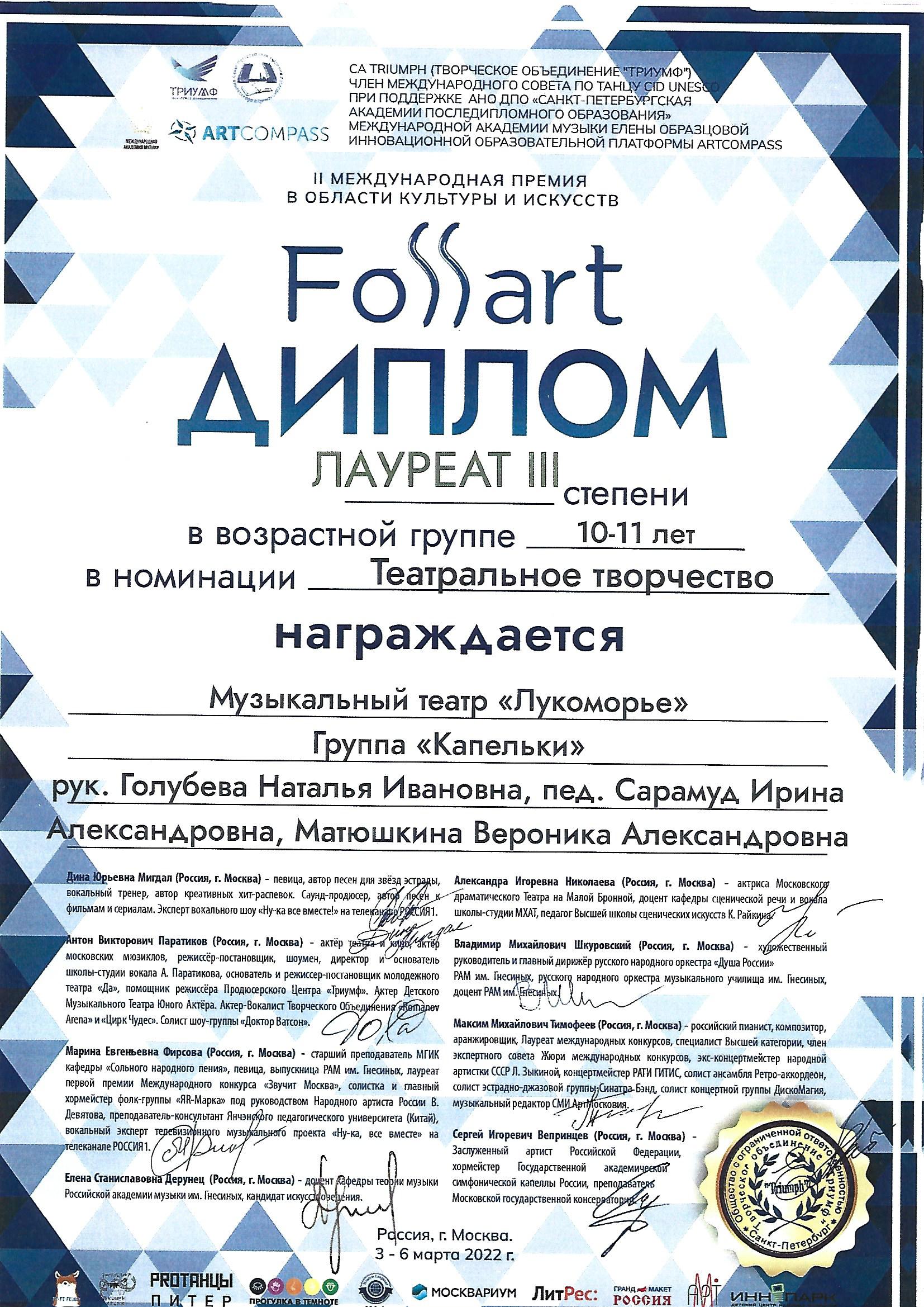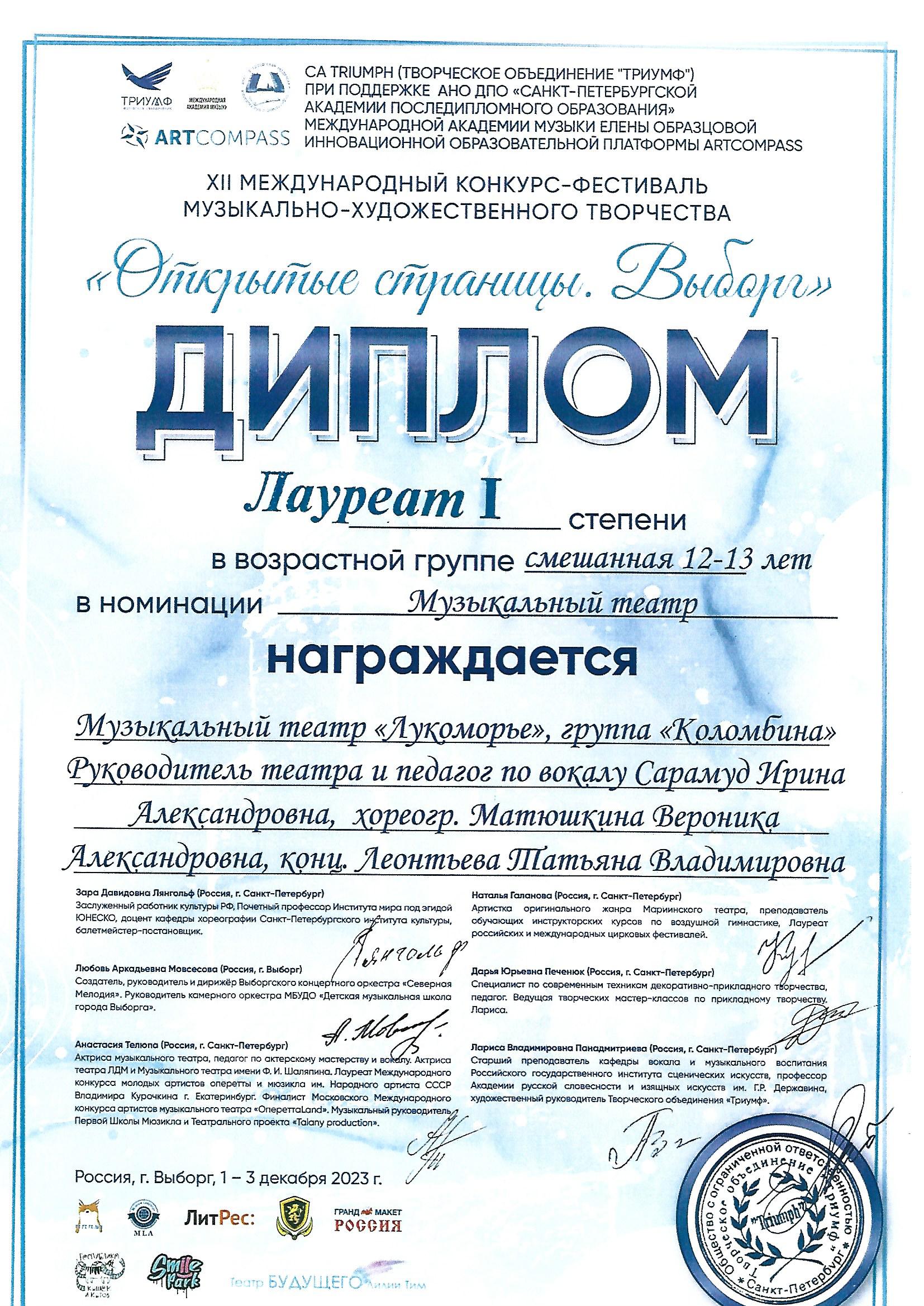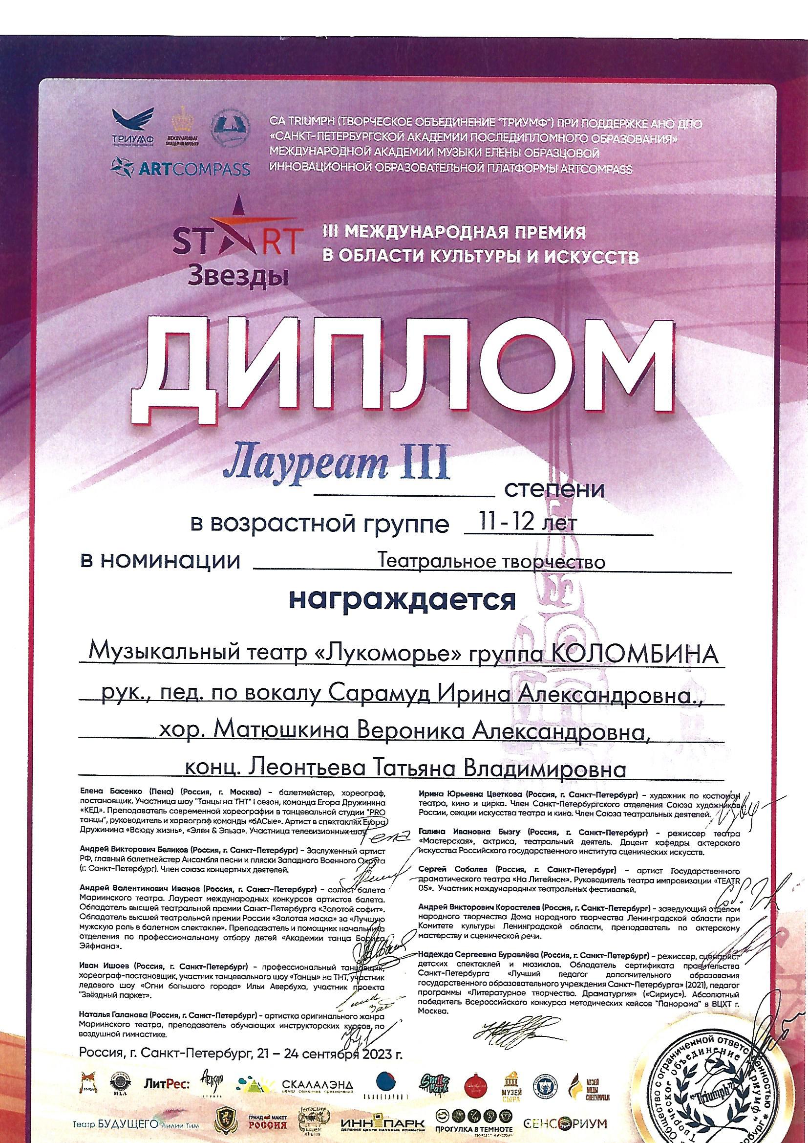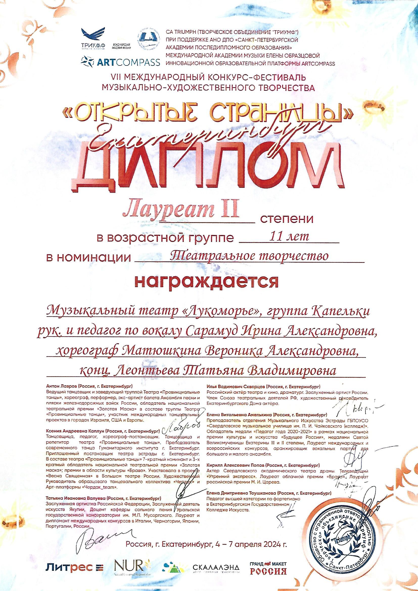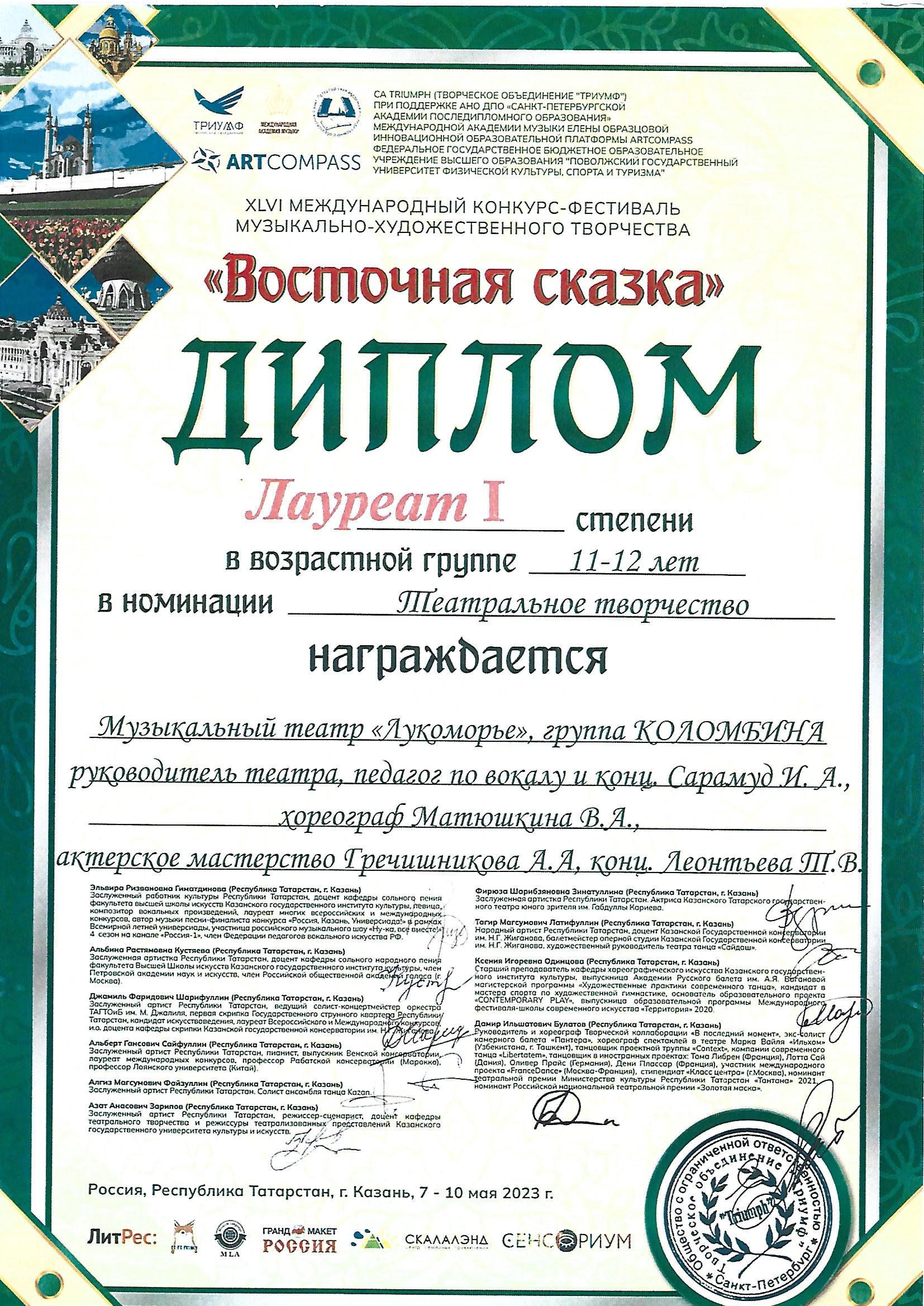 Материалы, отображающие образовательную активность педагогов музыкального театра "Лукоморье"