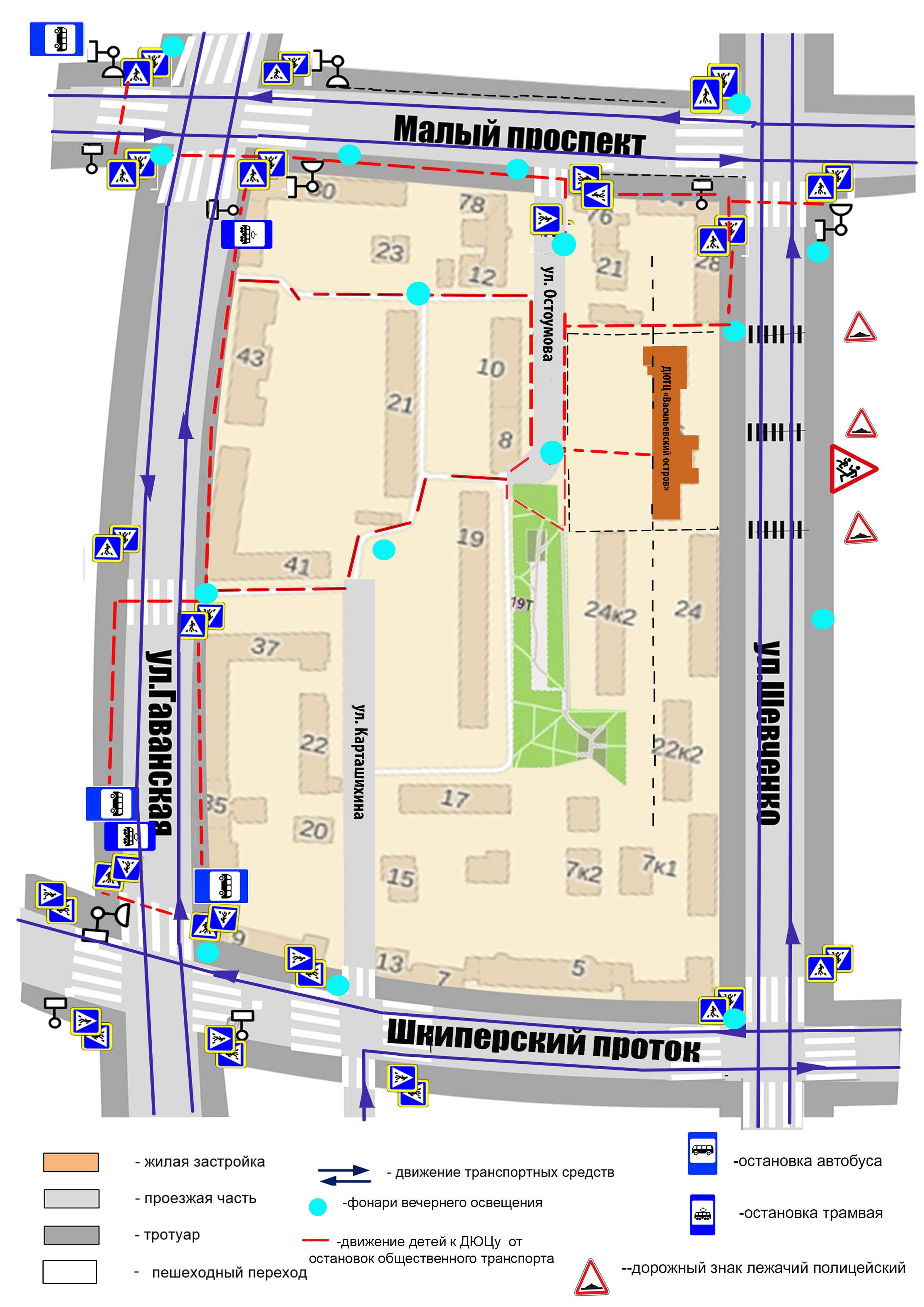 Схема организации дорожного движения в непосредственной близости от образовательного учреждения с размещением соответствующих технических средств, маршруты движения детей